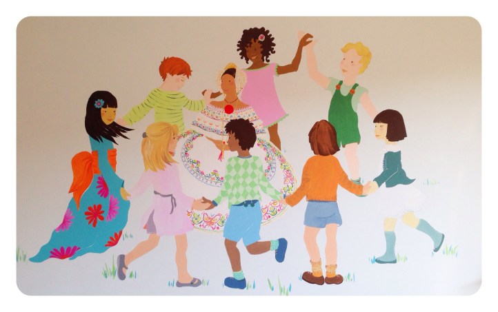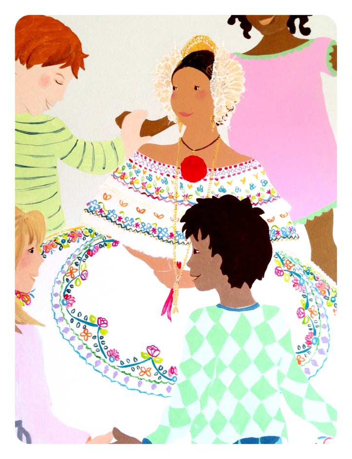 Para llevar a cabo el conjunto hemos tomado prestadas ilustraciones de diferentes ilustradores comenzando por la estupenda Sarah Jane, de la que tomamos prestados algunos de sus lindos niños…para que bailen con otros desconocidos para ellos…