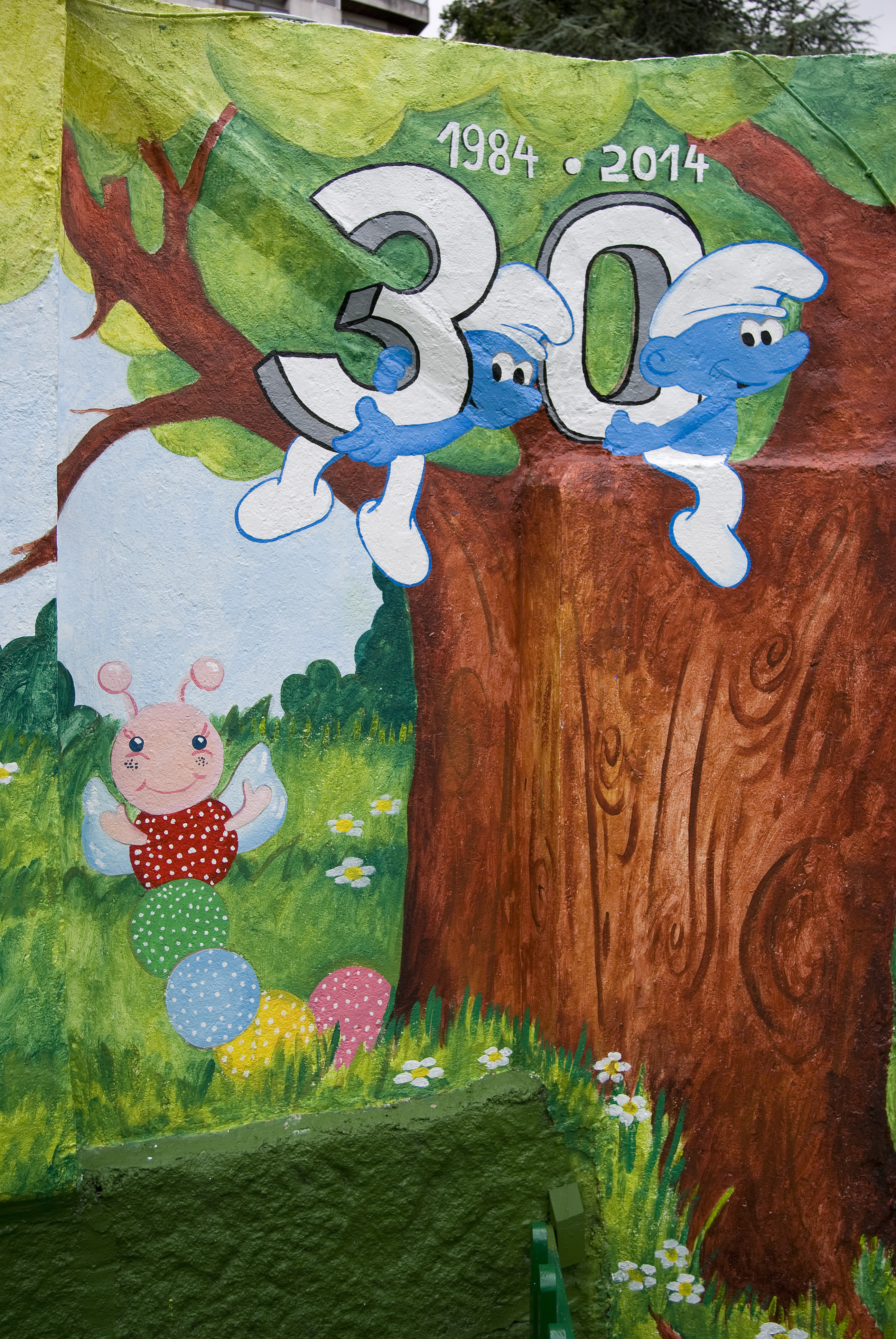 Mural Terminado, 30 ANIVERSARIO Escuela Infantil Pitufos de Vigo, Galicia.
