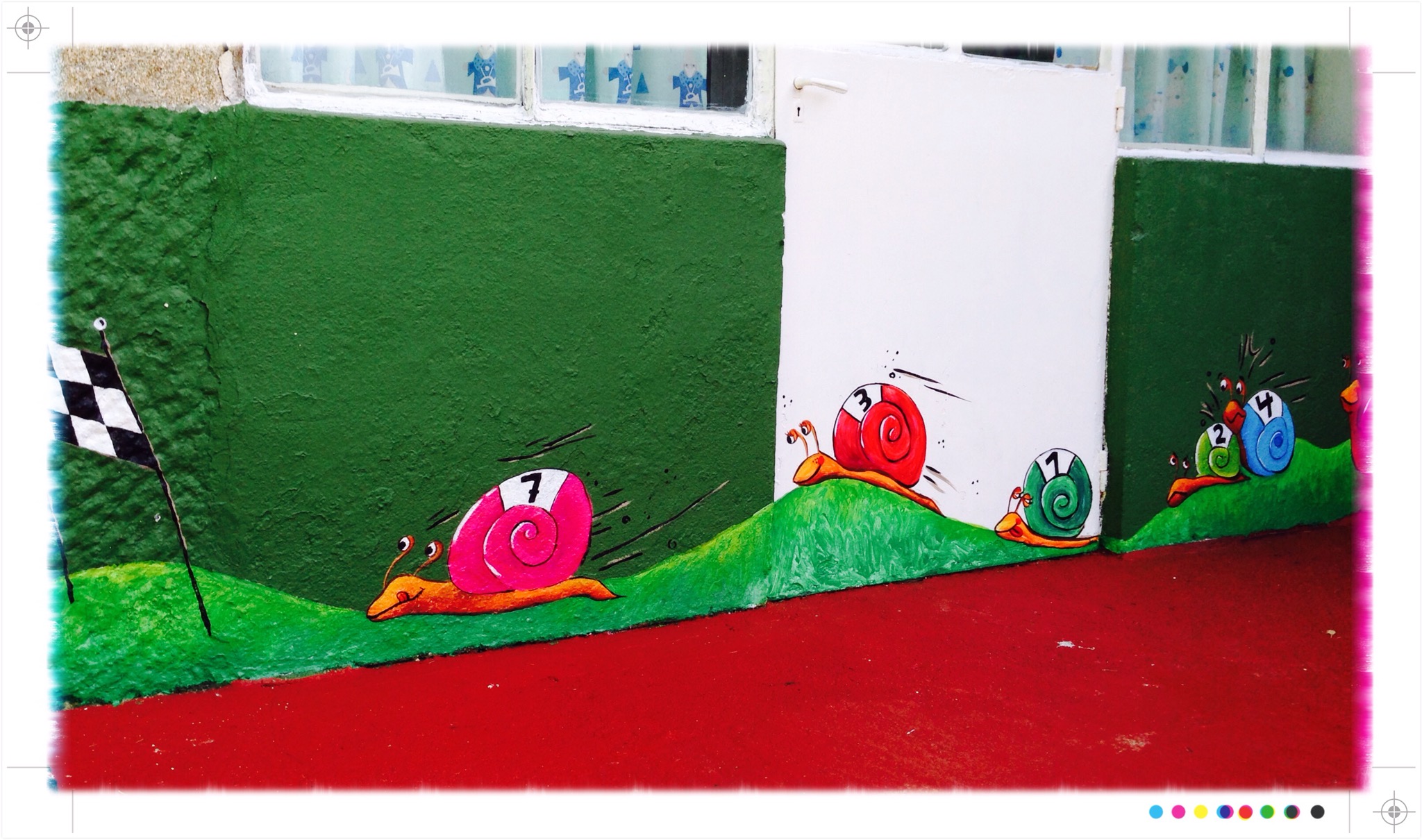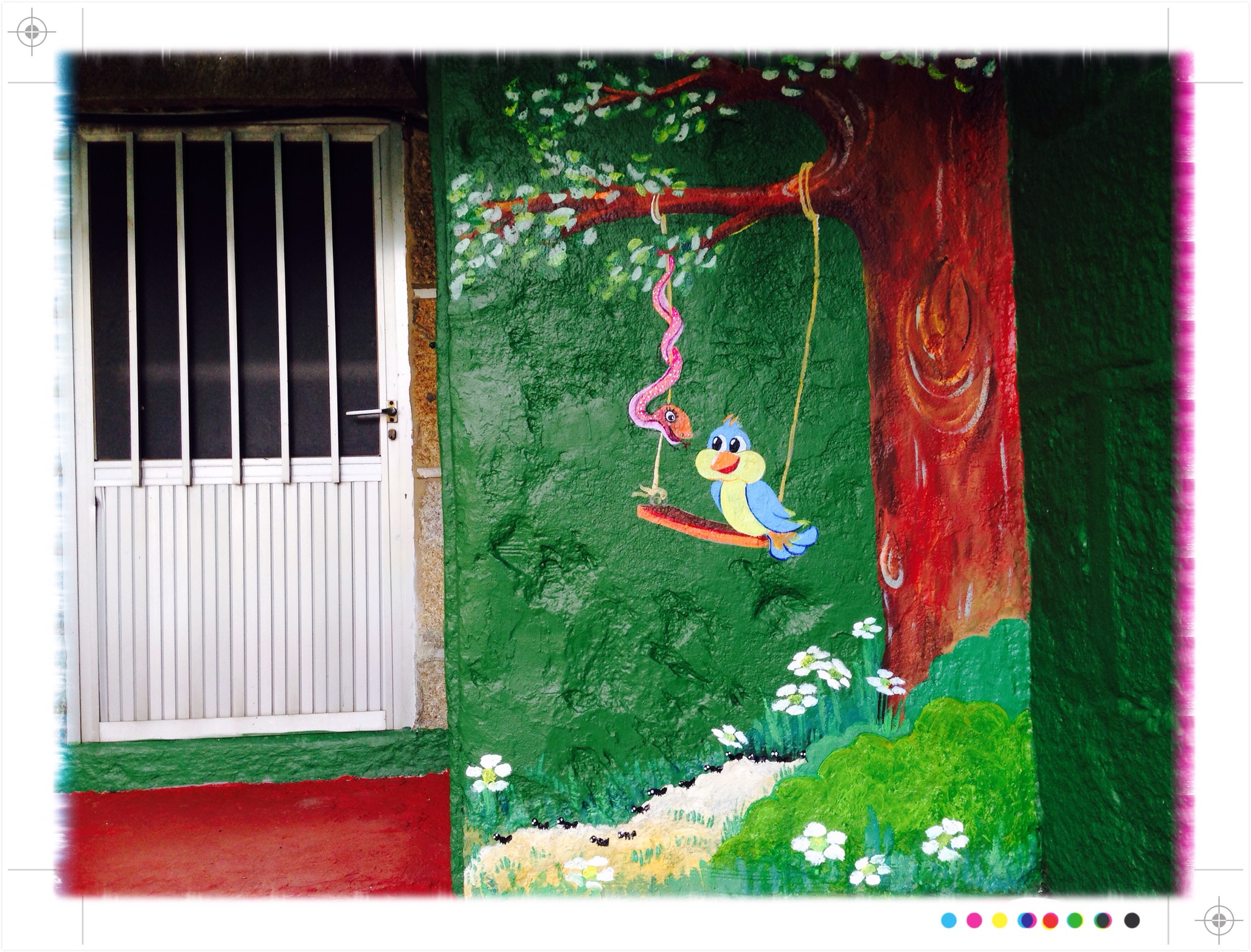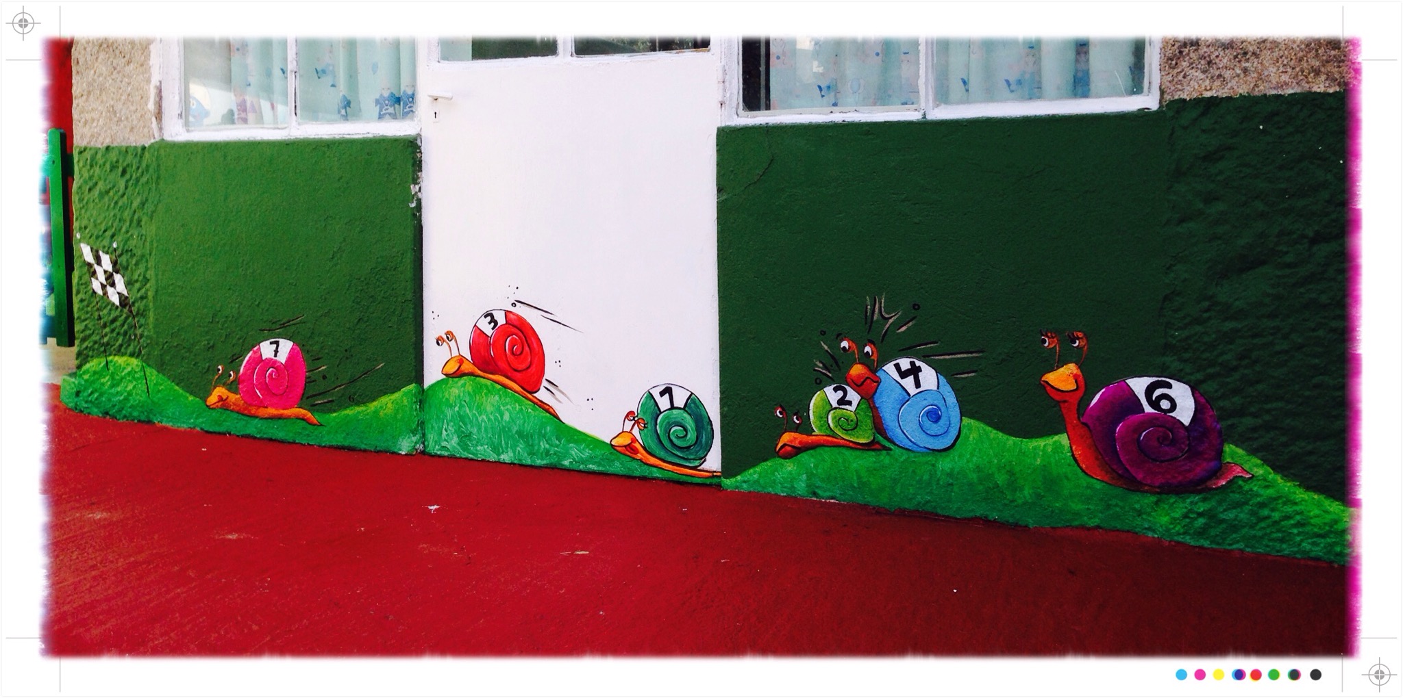 Gracias, por dejarme soñar en cada esquina de esta Escuela Infantil…supongo q eso es lo que hace que disfrute tanto cuando trazo historias de carboncillo en sus paredes, cuando mojo el pincel y la brocha en los colores que mi mano traza y extiende…