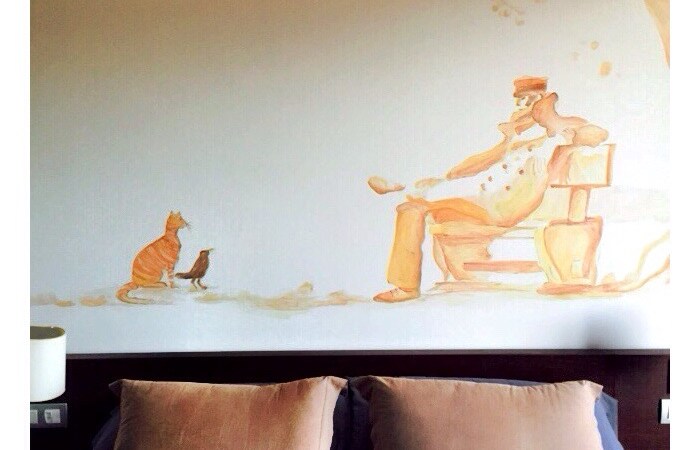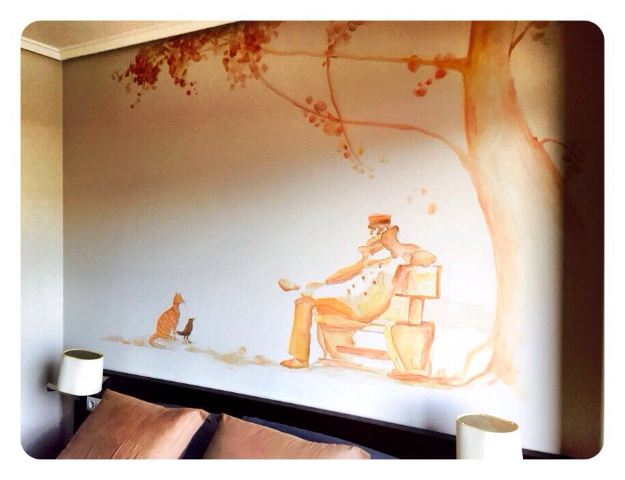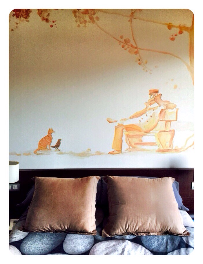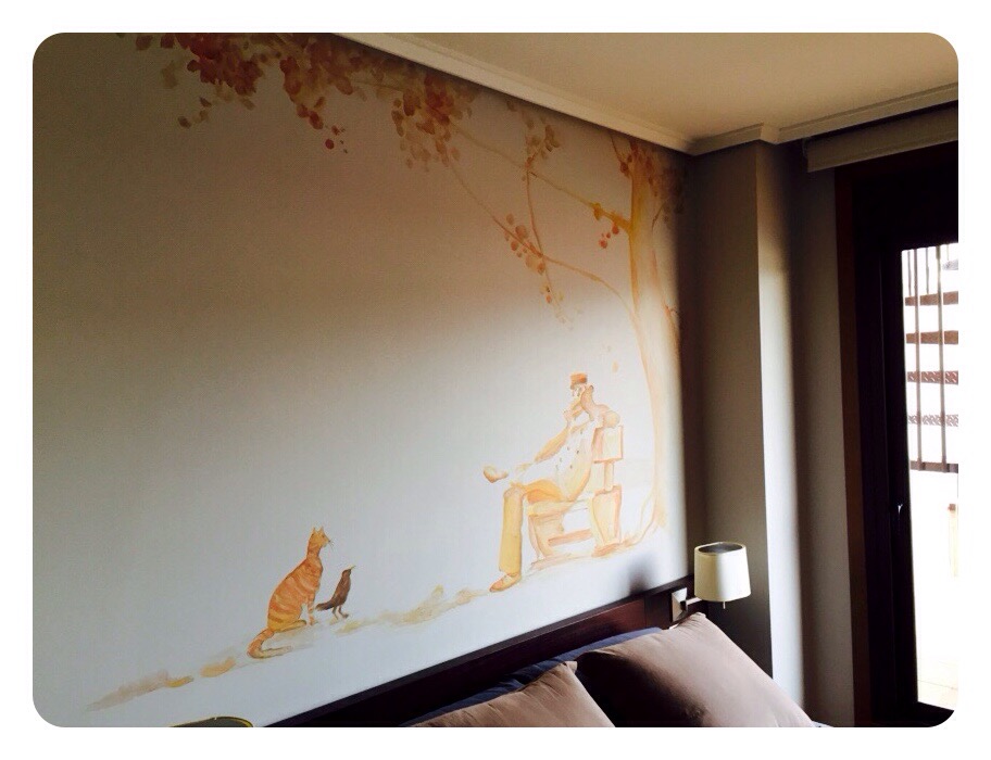 Hoy he recibido algunas fotos del dormitorio en el que realicé un reciente mural inspirado en una Ilustraciòn del mítico còmic Corto Maltés…y el resultado es estupendo… Creo que la idea funciona fabulosamente, envuelve un rinconcito importante de un hogar y preside el dormitorio haciéndose presente en toda la habitaciòn sin cargarla en absoluto.