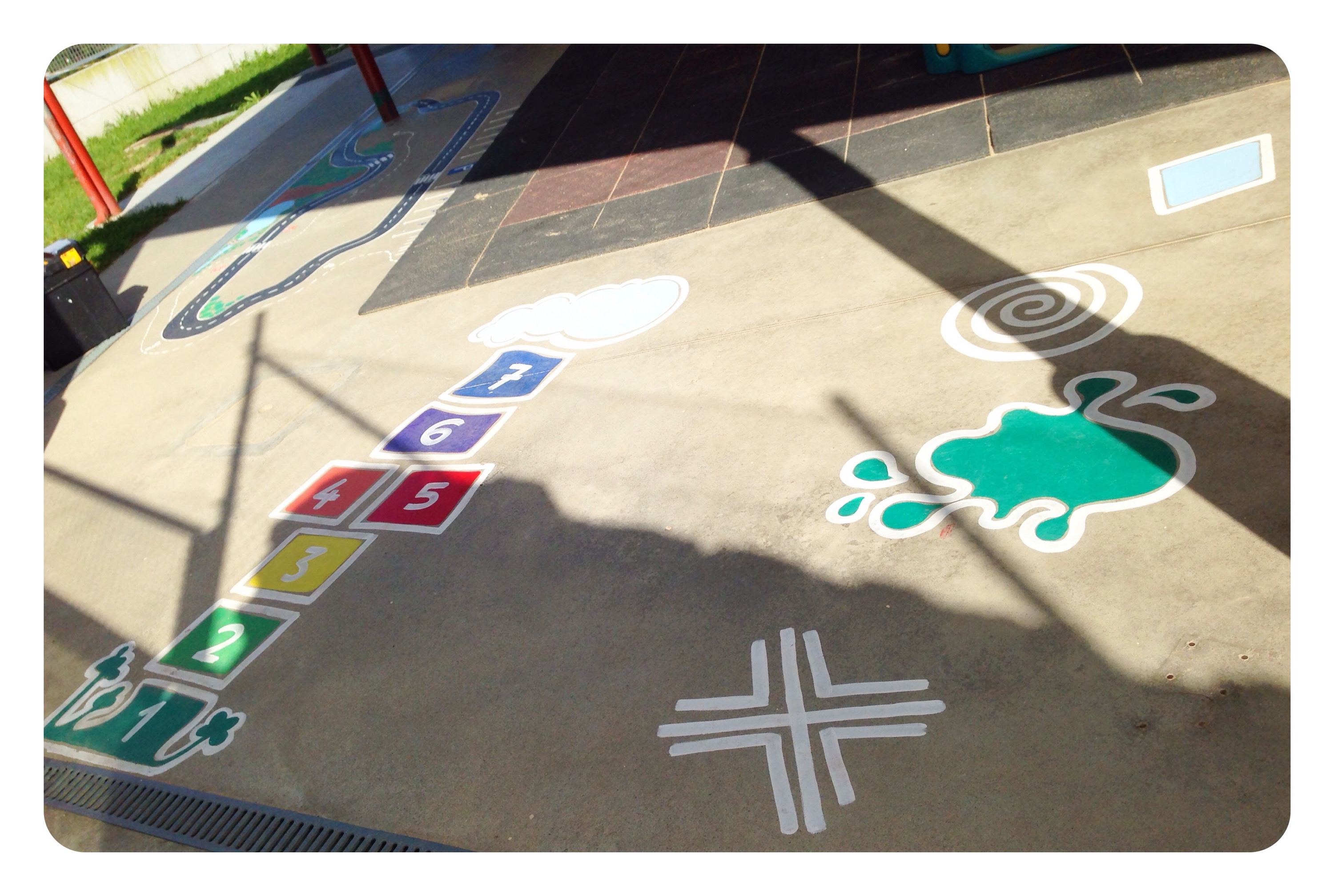 Rayuelas, circuítos y otros juegos en los Patios de la Escuela VilaLaura de Vigo…Terminados!