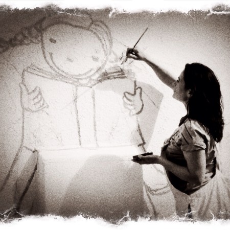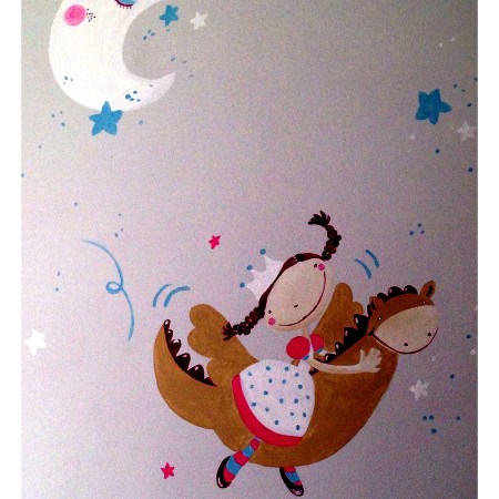 Mural Aulario Escuela infantil. Terminando el dibujo…tan solo el dibujo y deseando empezar con el color…