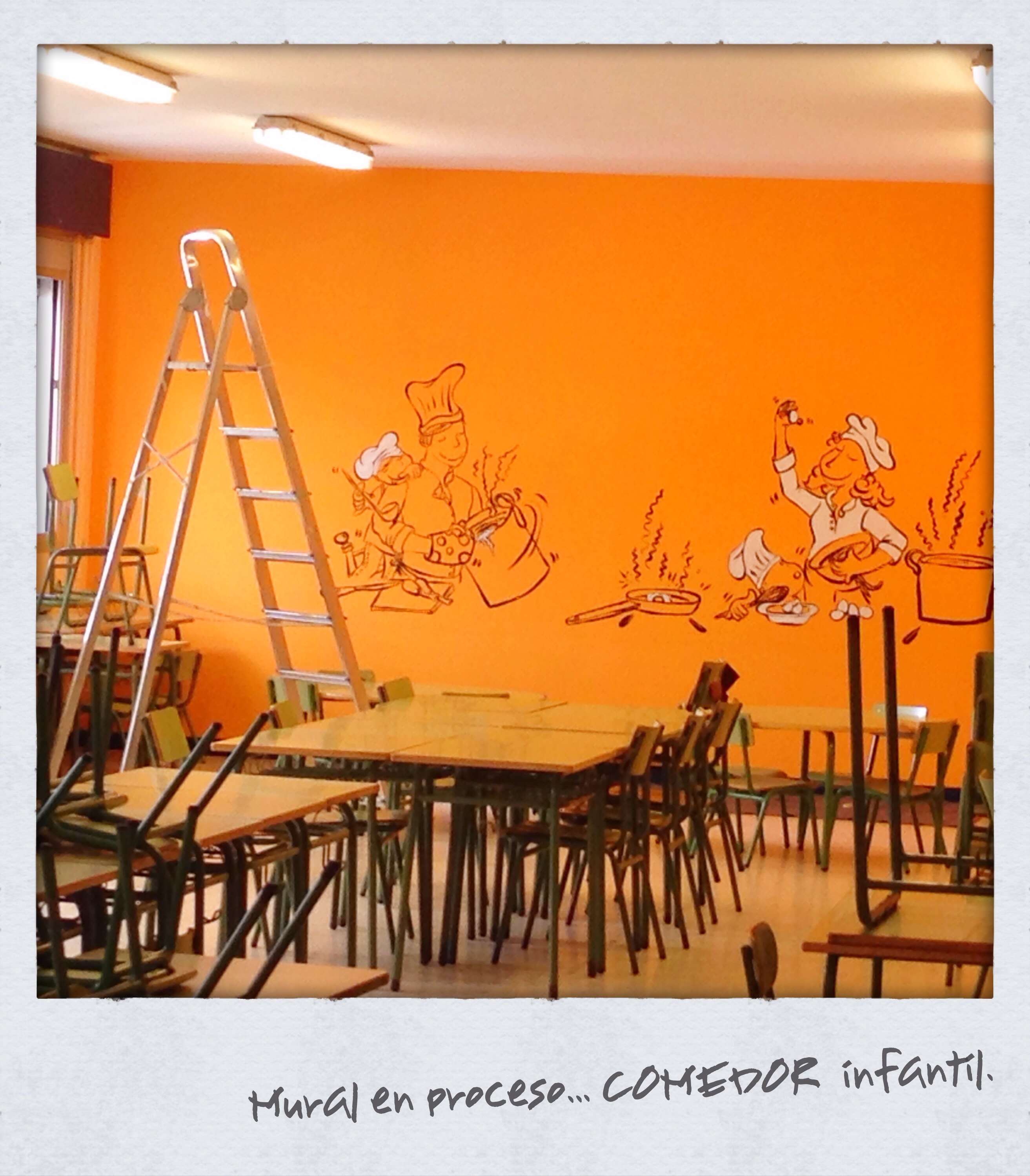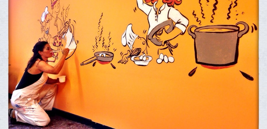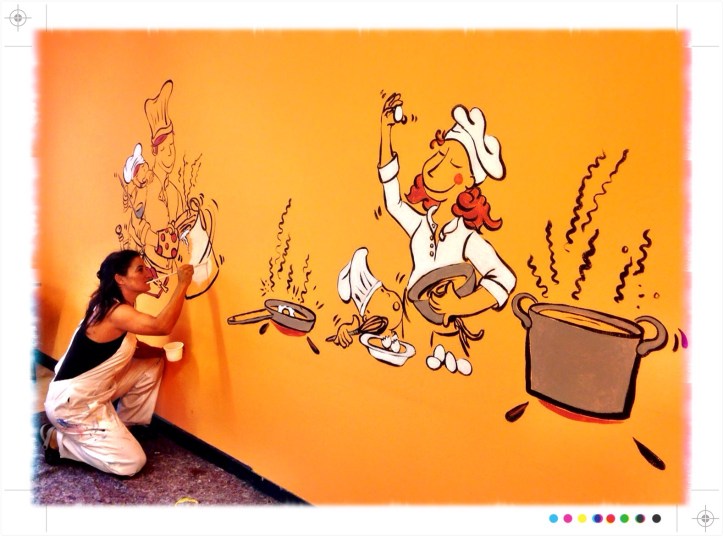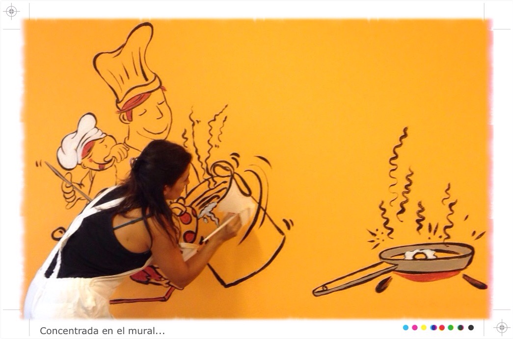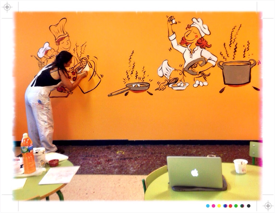 Estamos ya pintando un nuevo Mural en el interior de un comedor infantil…