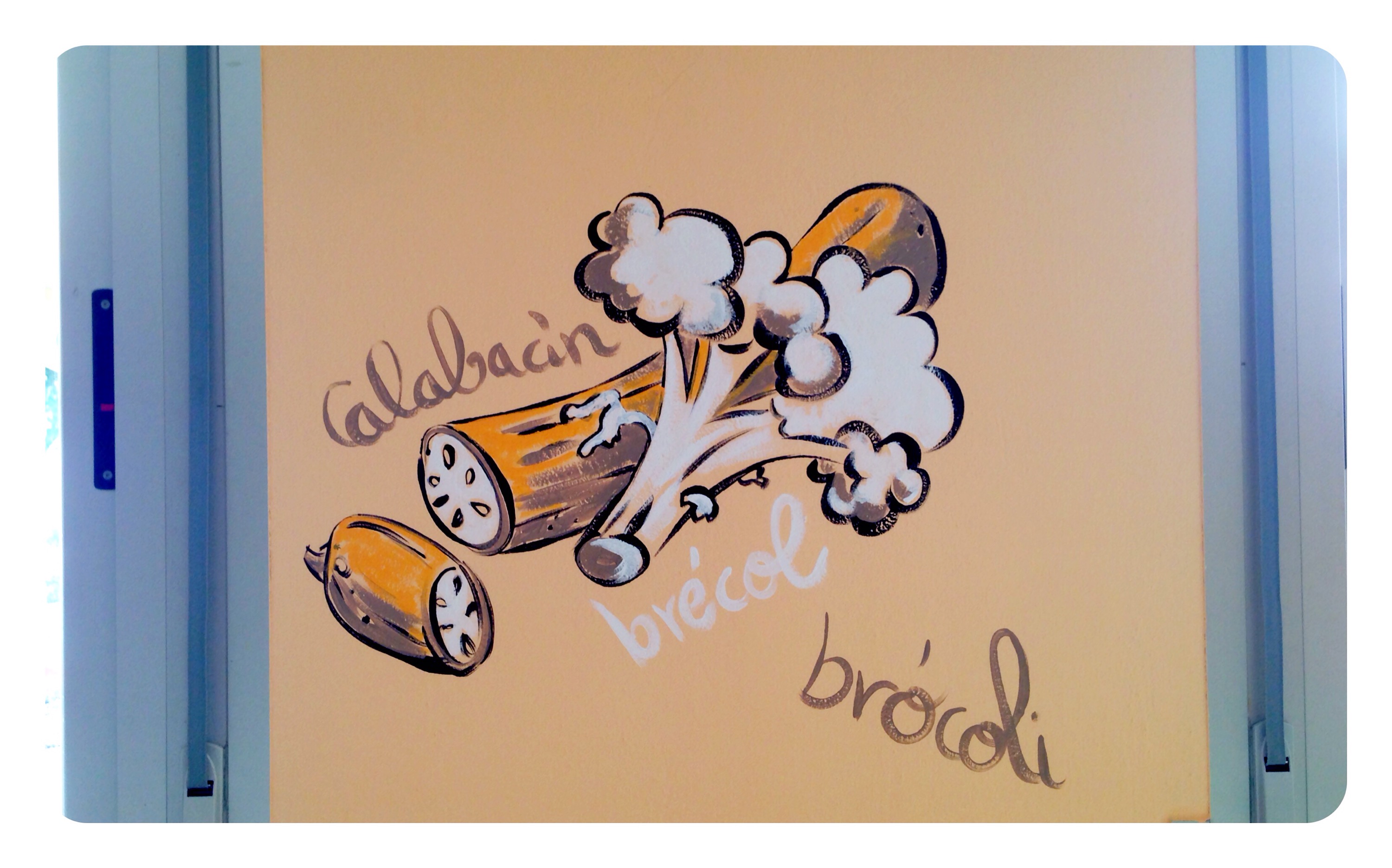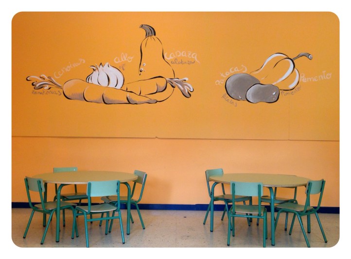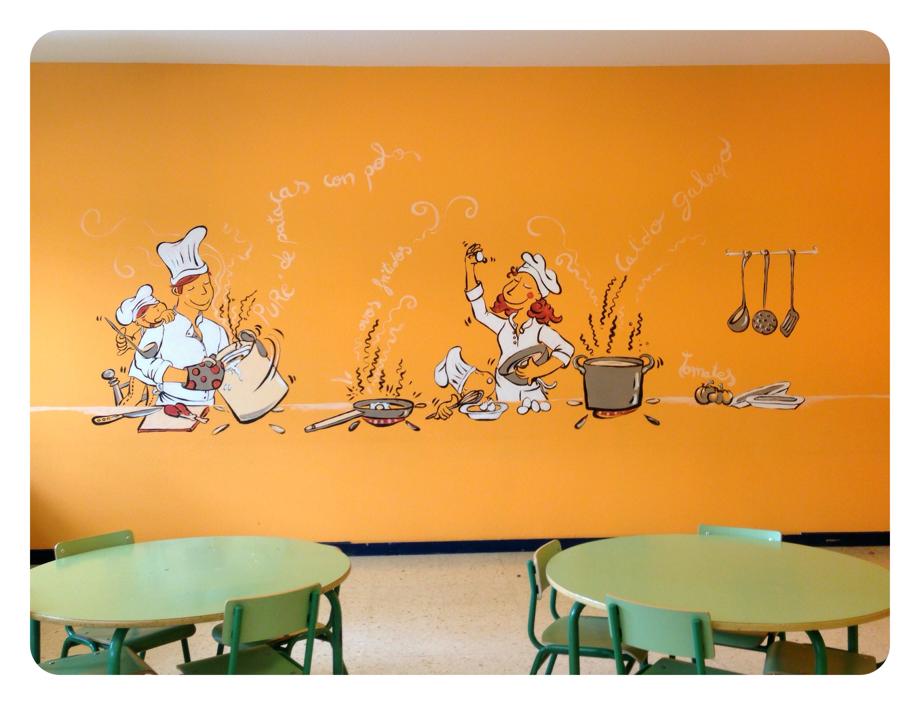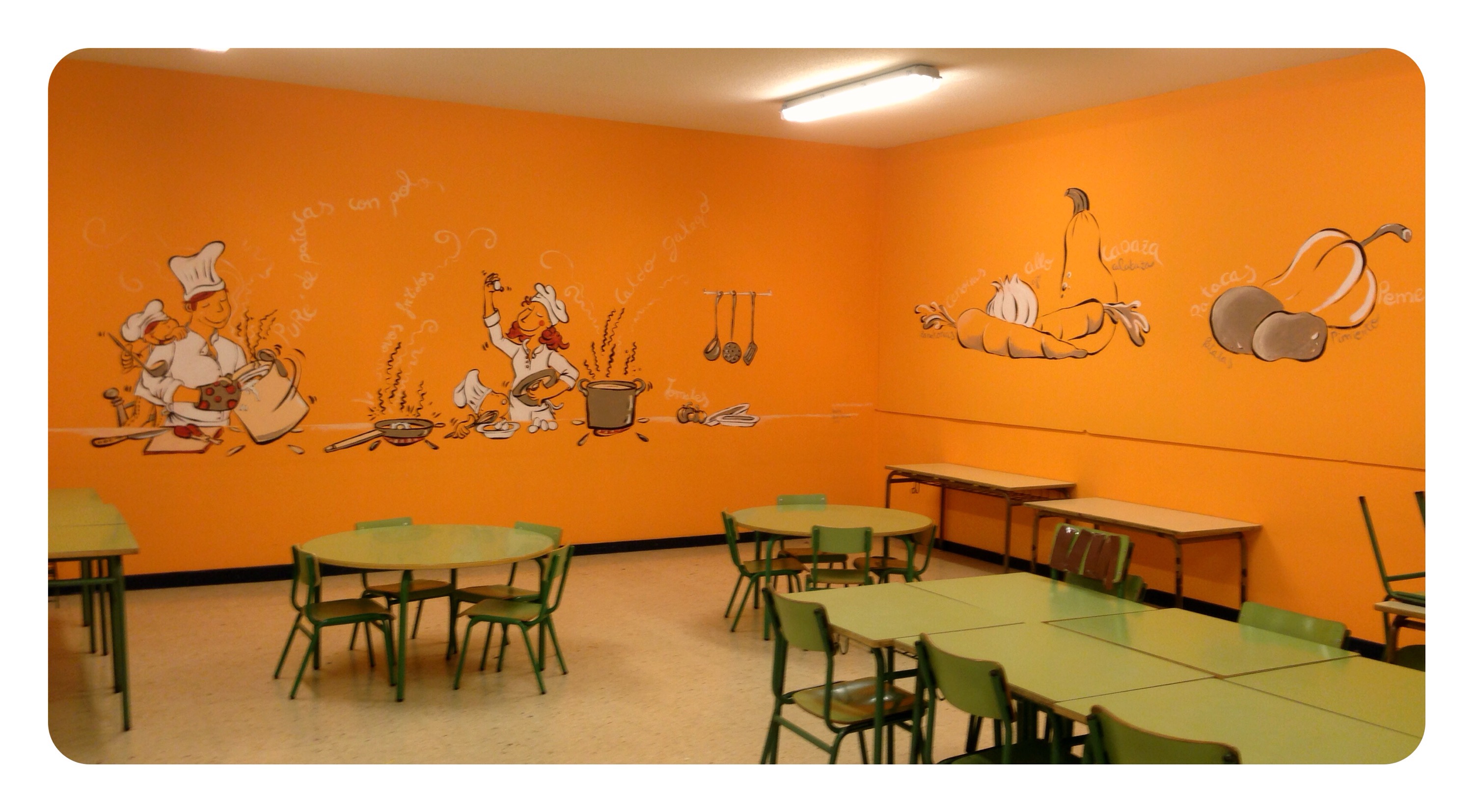 …y un Mural lateral con verduras y hortalizas q salpicarán tambien pequeños rincones del comedor a 3 tonos…