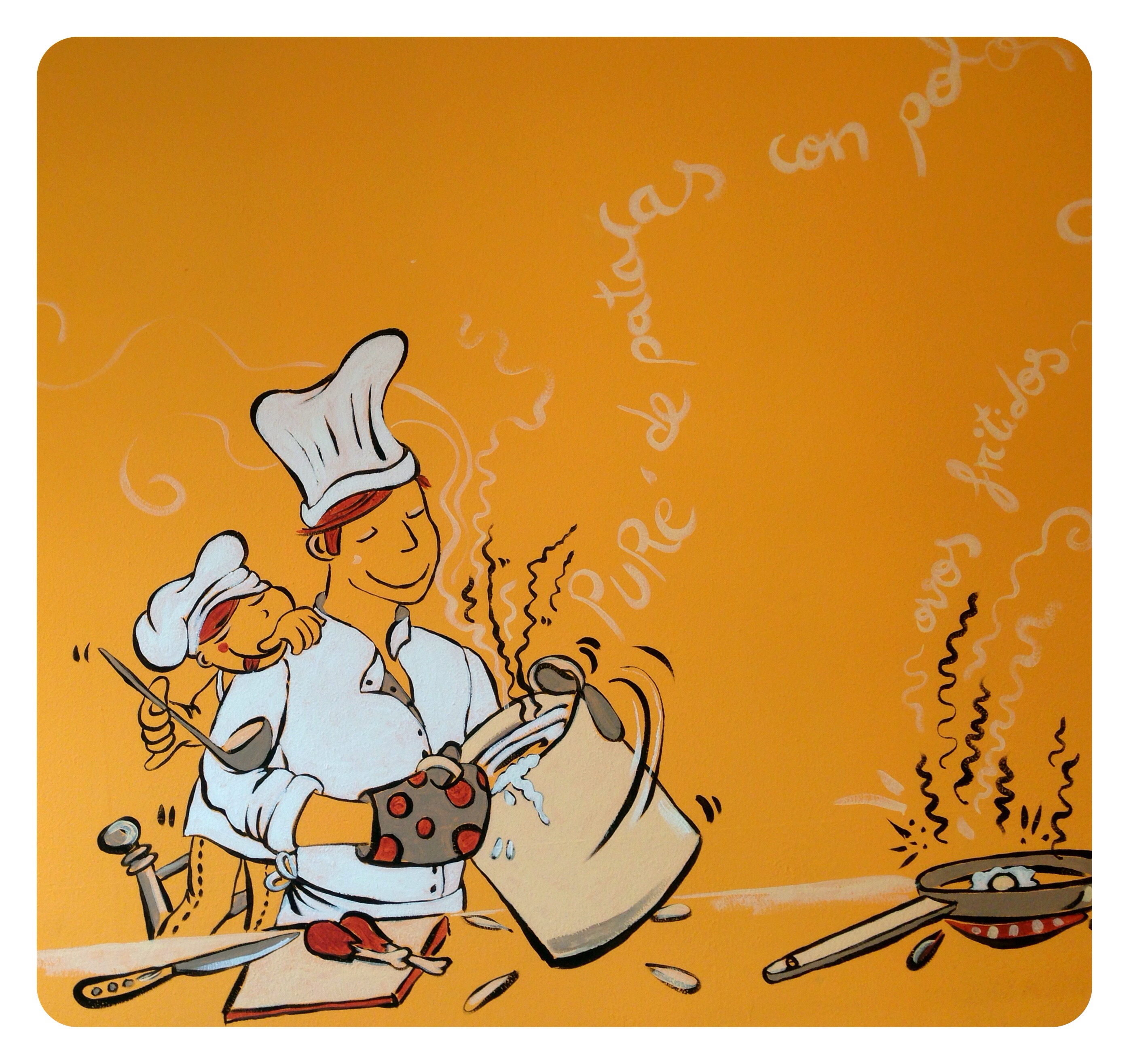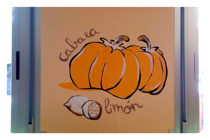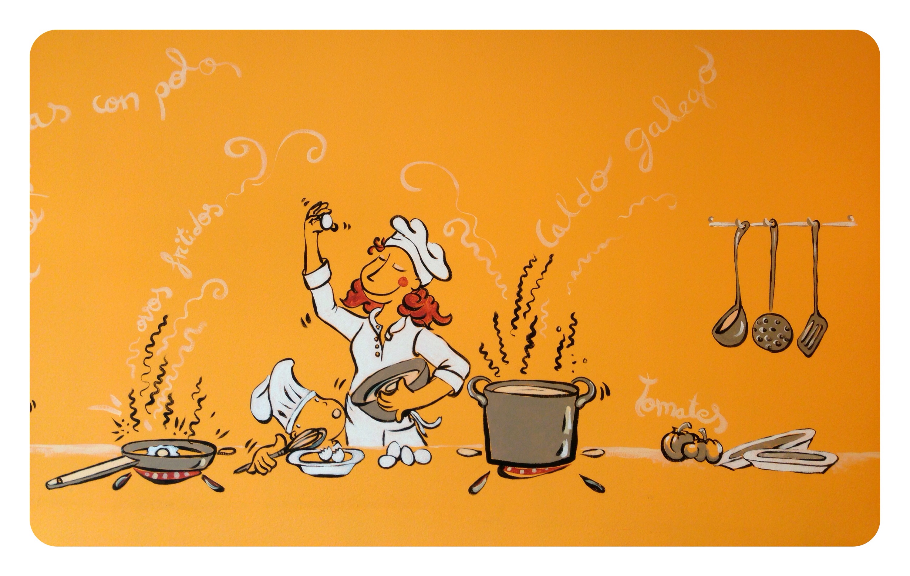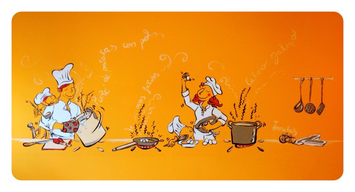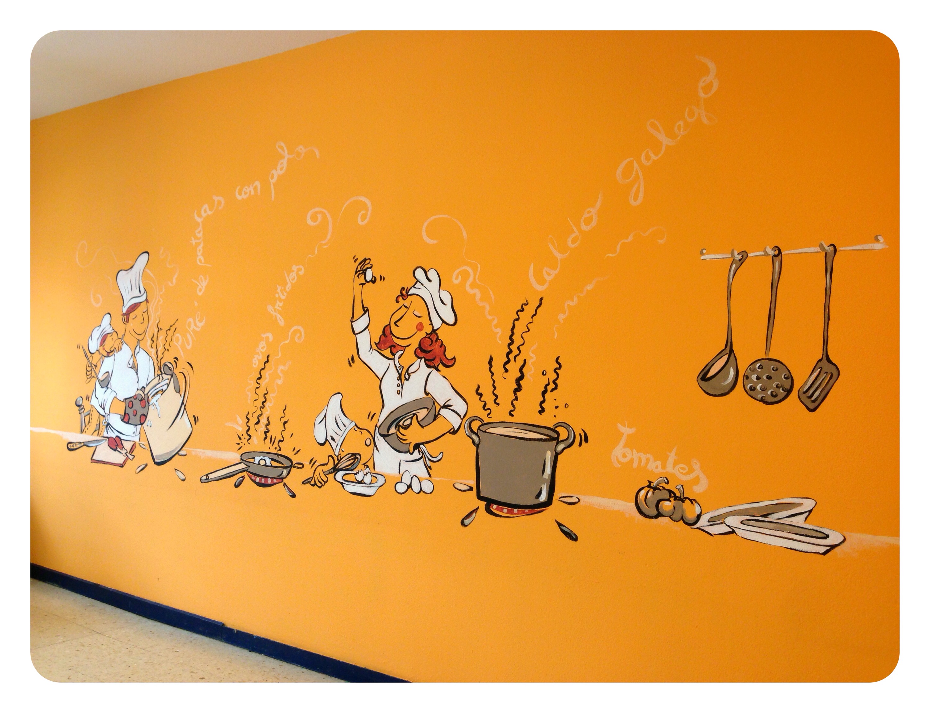 …y un Mural lateral con verduras y hortalizas q salpicarán tambien pequeños rincones del comedor a 3 tonos…