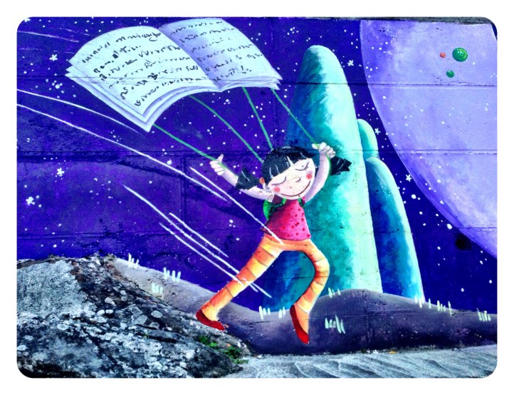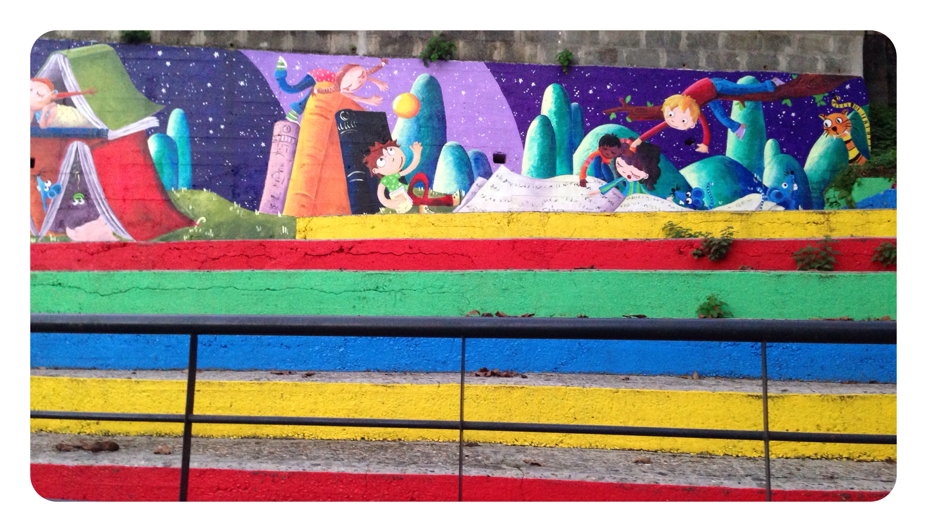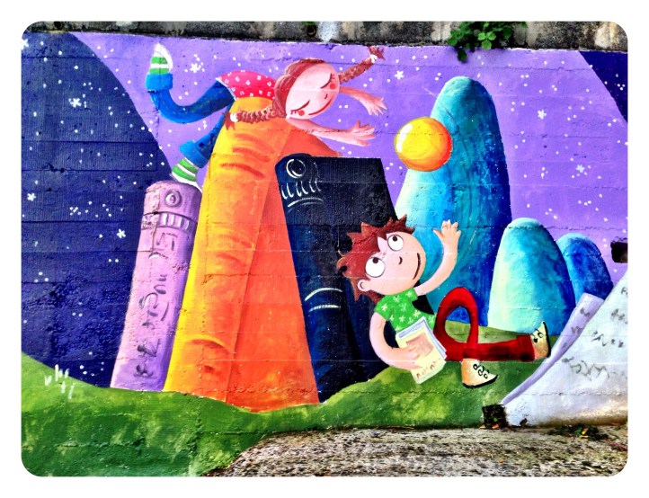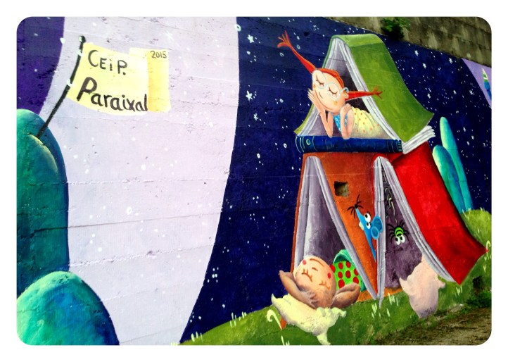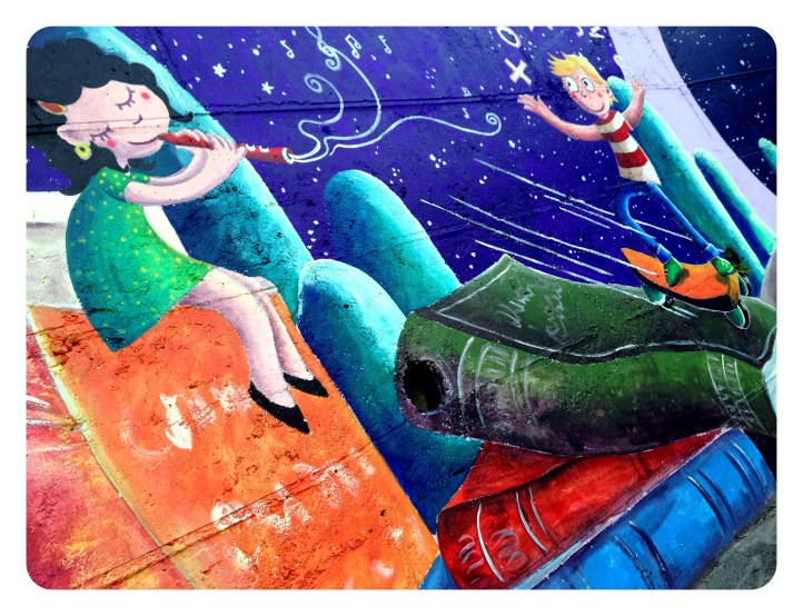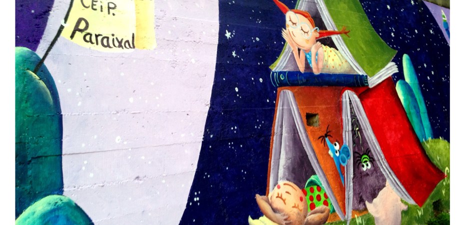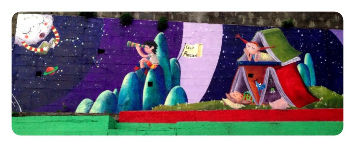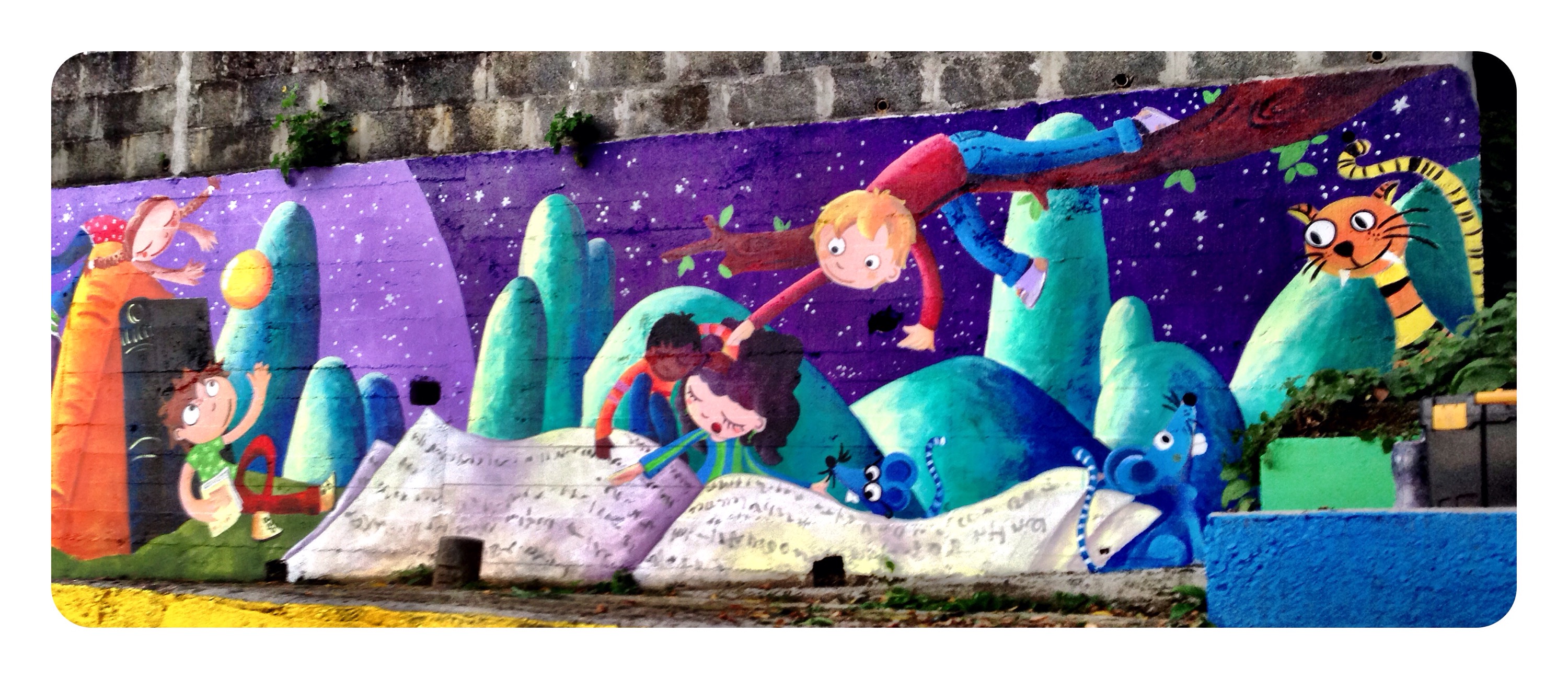 Espero que disfruteis en el cole de este muro de historias, ha sido un placer…y una delicia ser rodeada en los «recreos» de niños curiosos con sonrisas provocadas por cada ilustraciòn…gracias por sus piropos…por su alegría.!!!