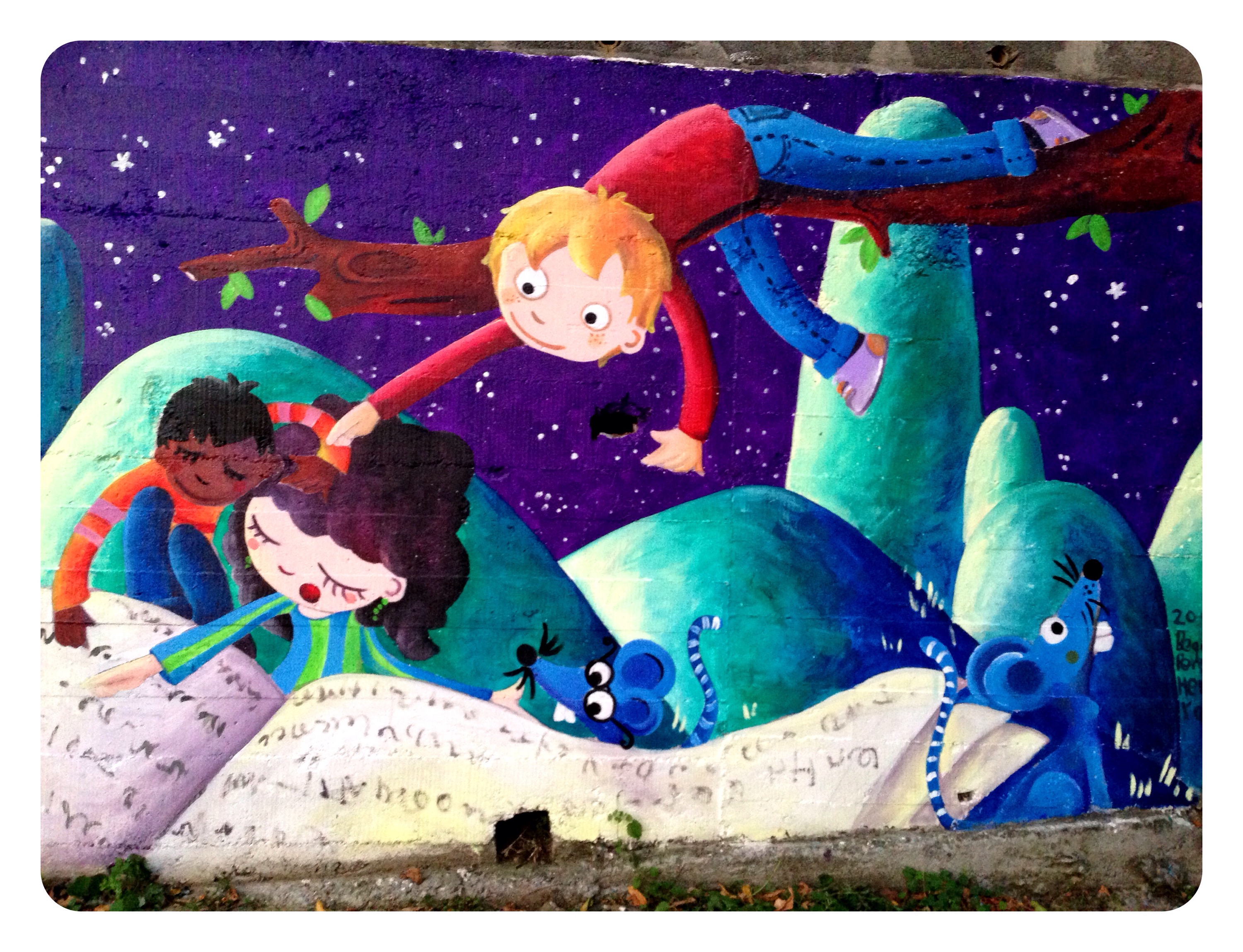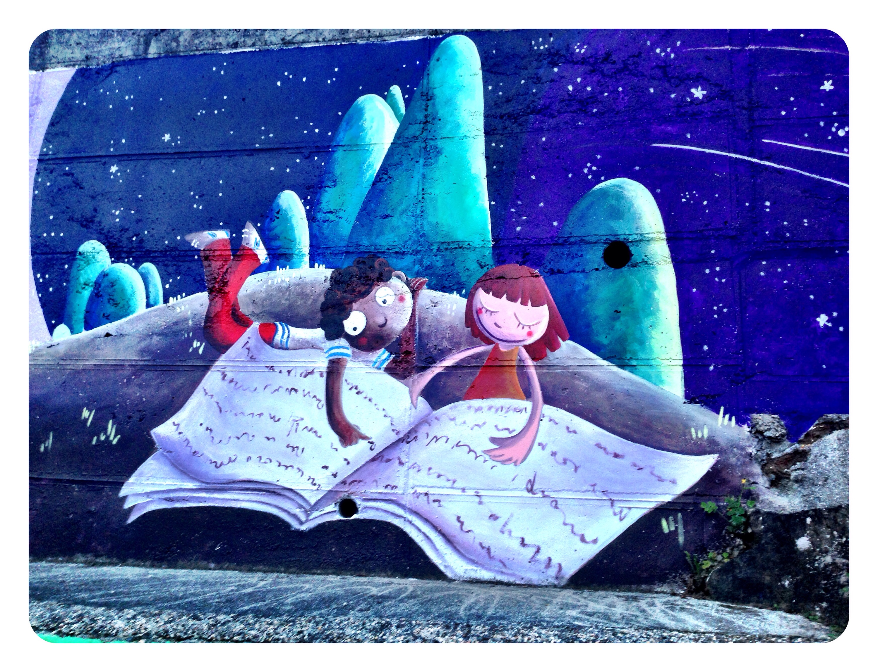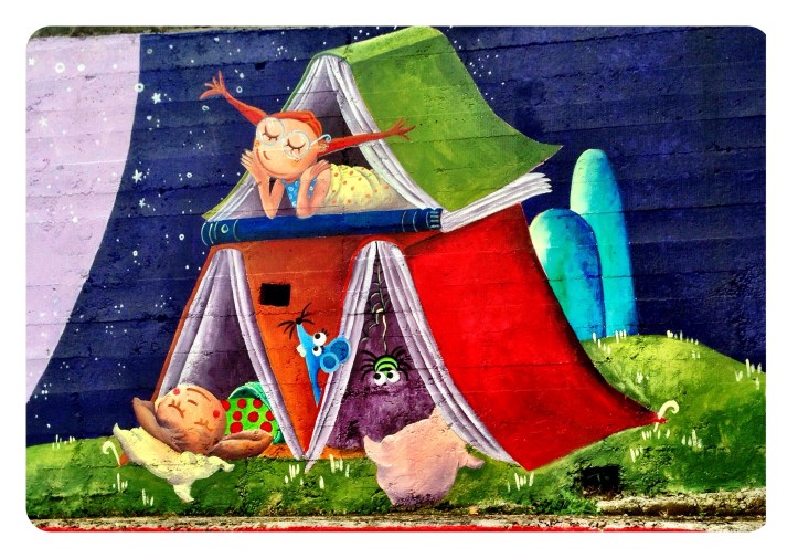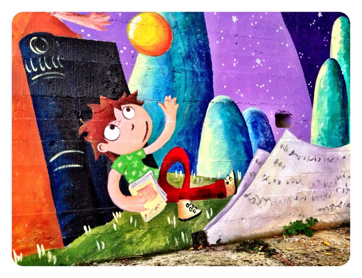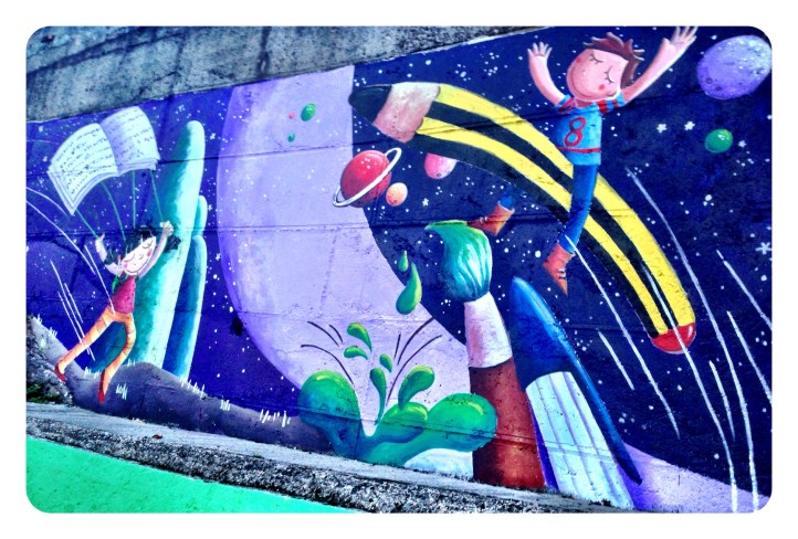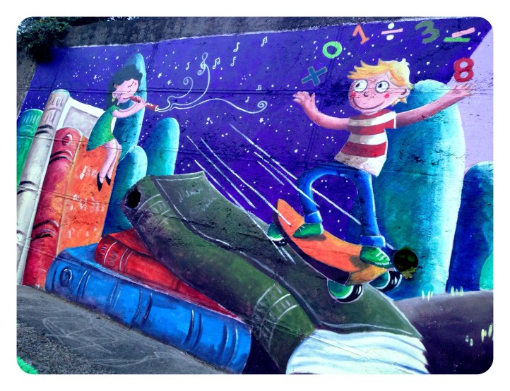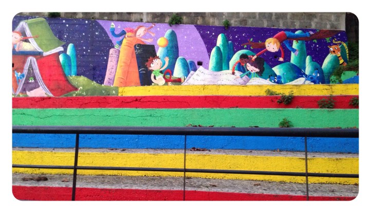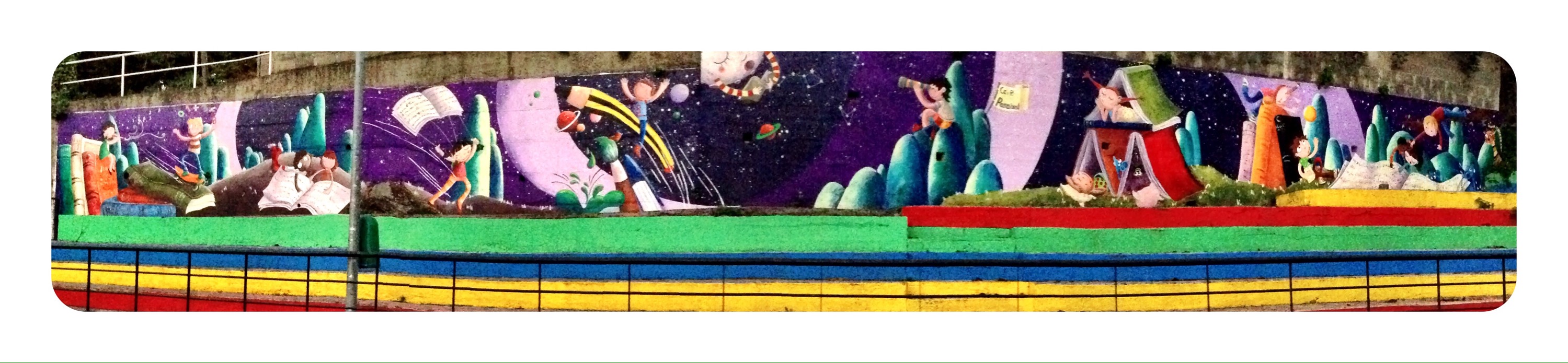 Espero que disfruteis en el cole de este muro de historias, ha sido un placer…y una delicia ser rodeada en los «recreos» de niños curiosos con sonrisas provocadas por cada ilustraciòn…gracias por sus piropos…por su alegría.!!!