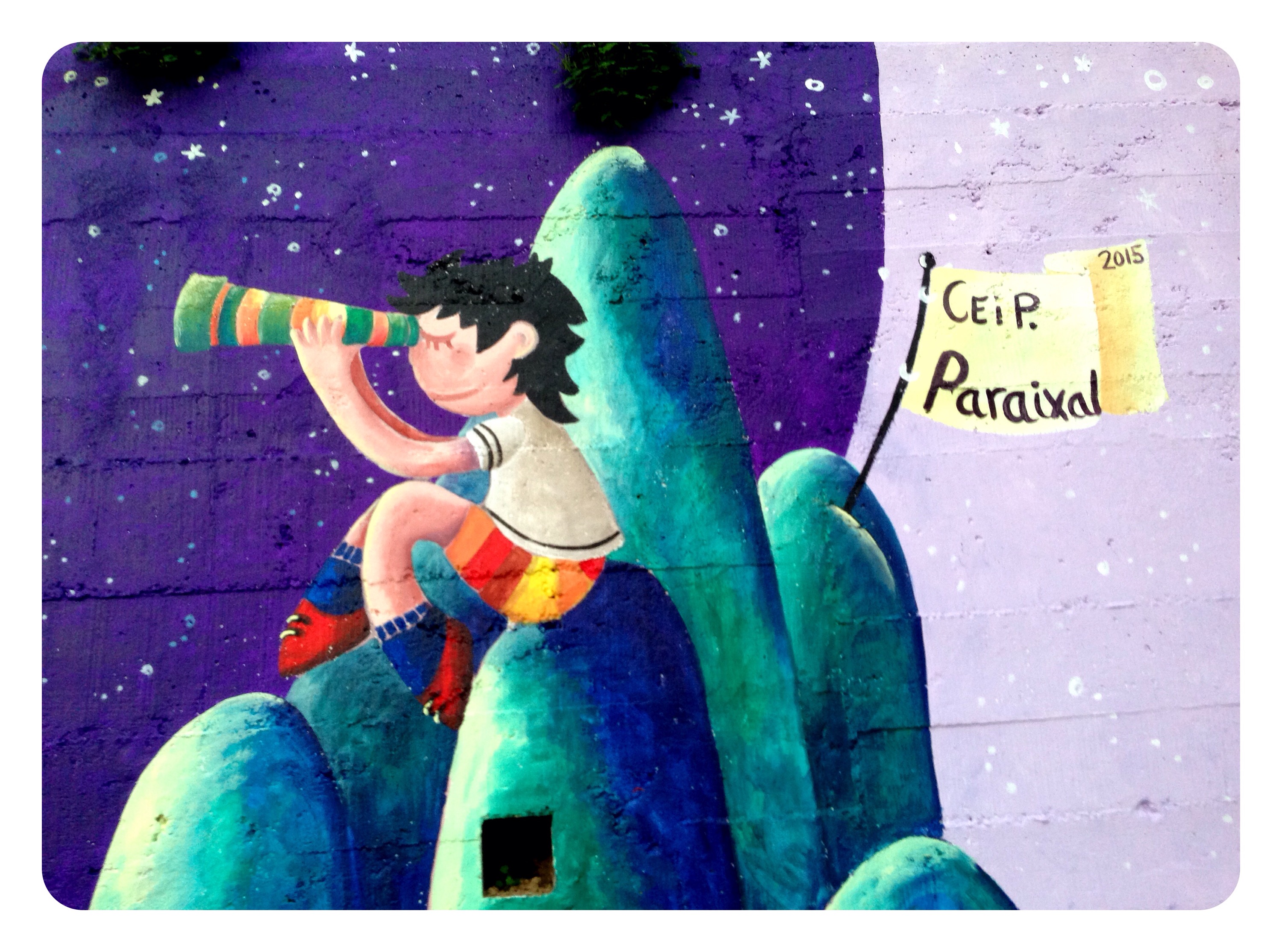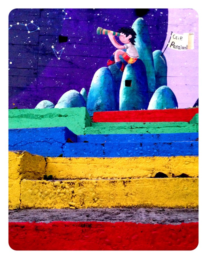Situado en la parte alta de las gradas del patio del colegio. CEIP PARAIXAL de Vigo, barrio de Teis.