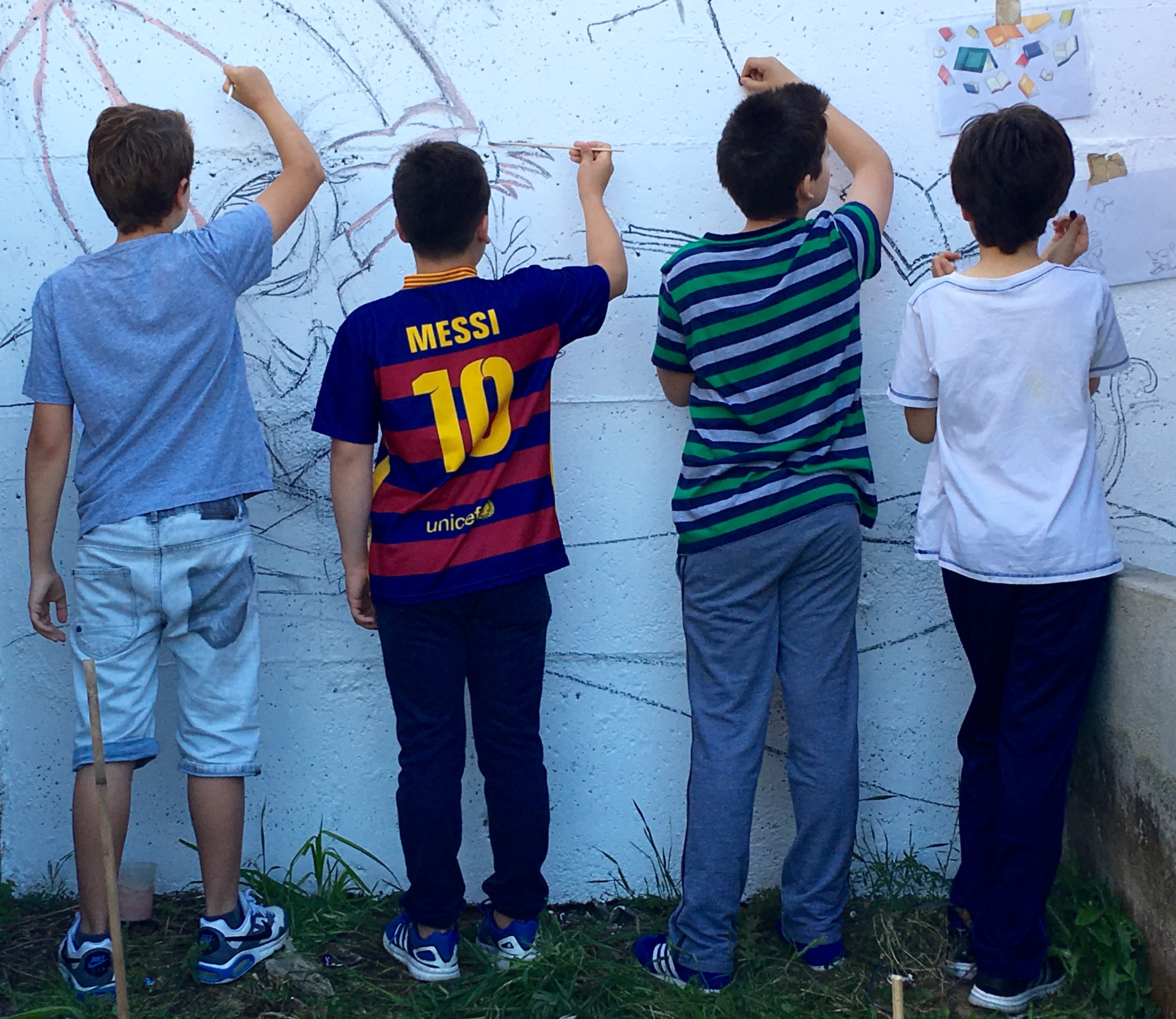 Una vez decidido el dibujo, había que organizar la colaboraciòn de 50 chicos y chicas de 11 años, para que todos pudieran participar y disfrutar con garantías.