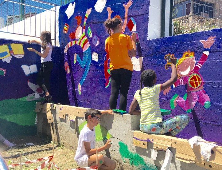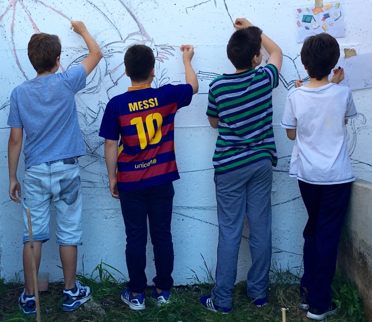Y aquí nos sumergimos en un nuevo proyecto…un «Mural participativo» en colaboraciòn con el Ceip. Emilia Pardo Bazán de Vigo (colegio «el Chouzo») Concello de Vigo y TilDiacríatico.