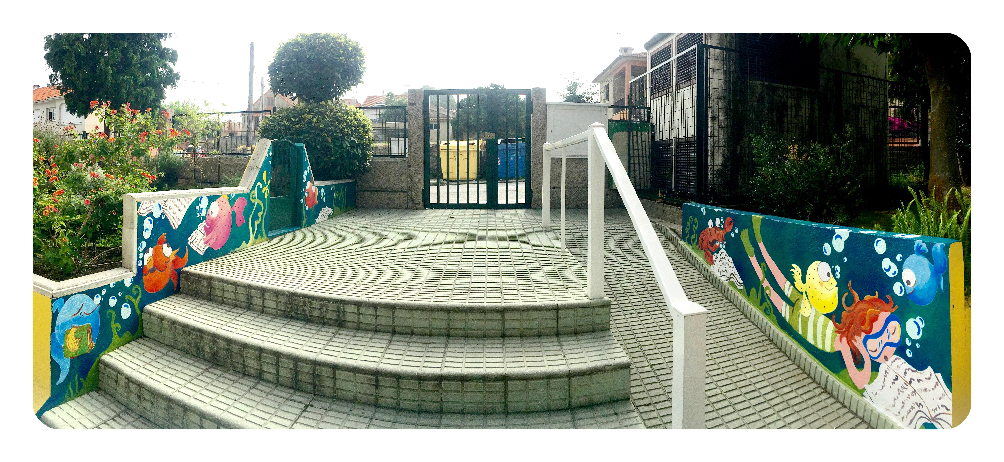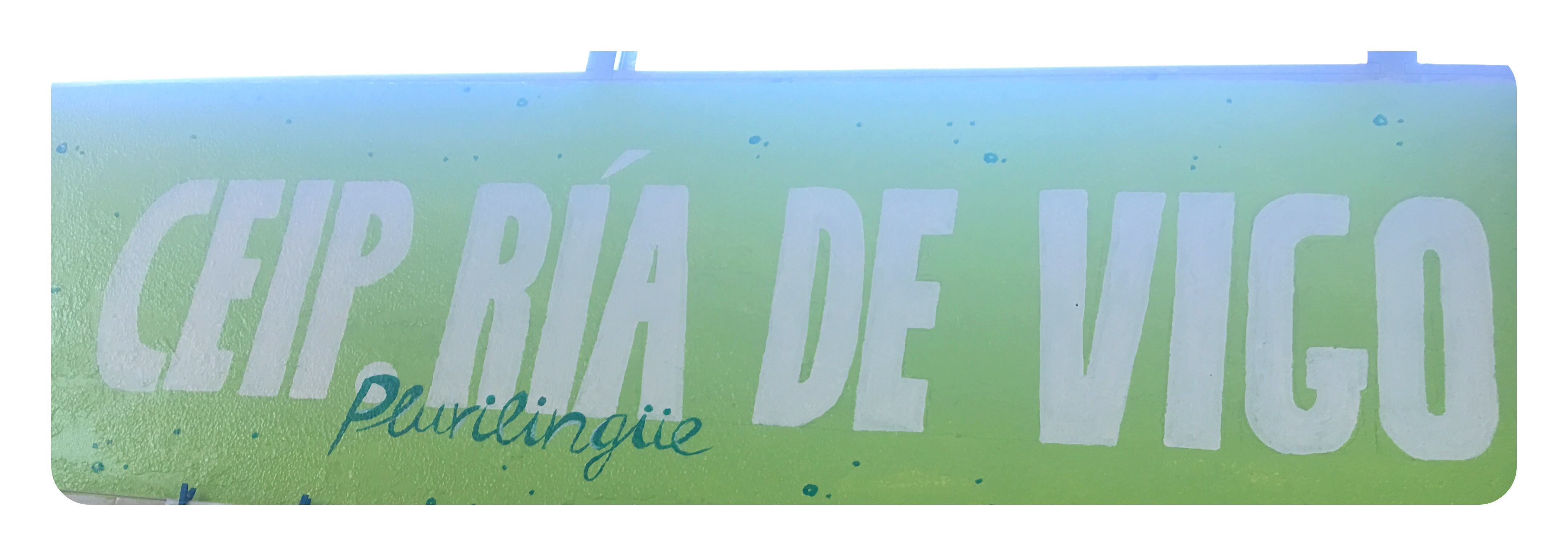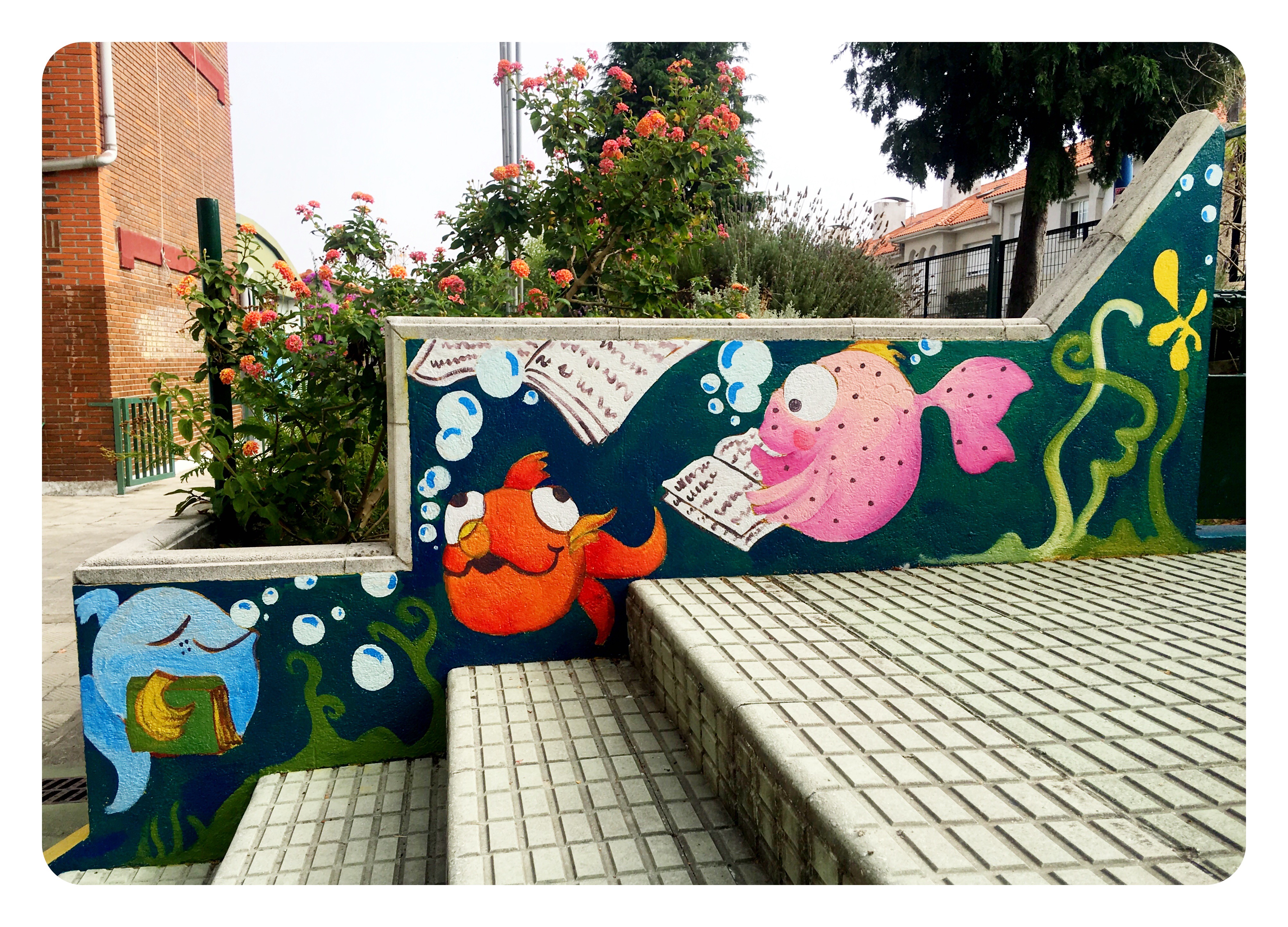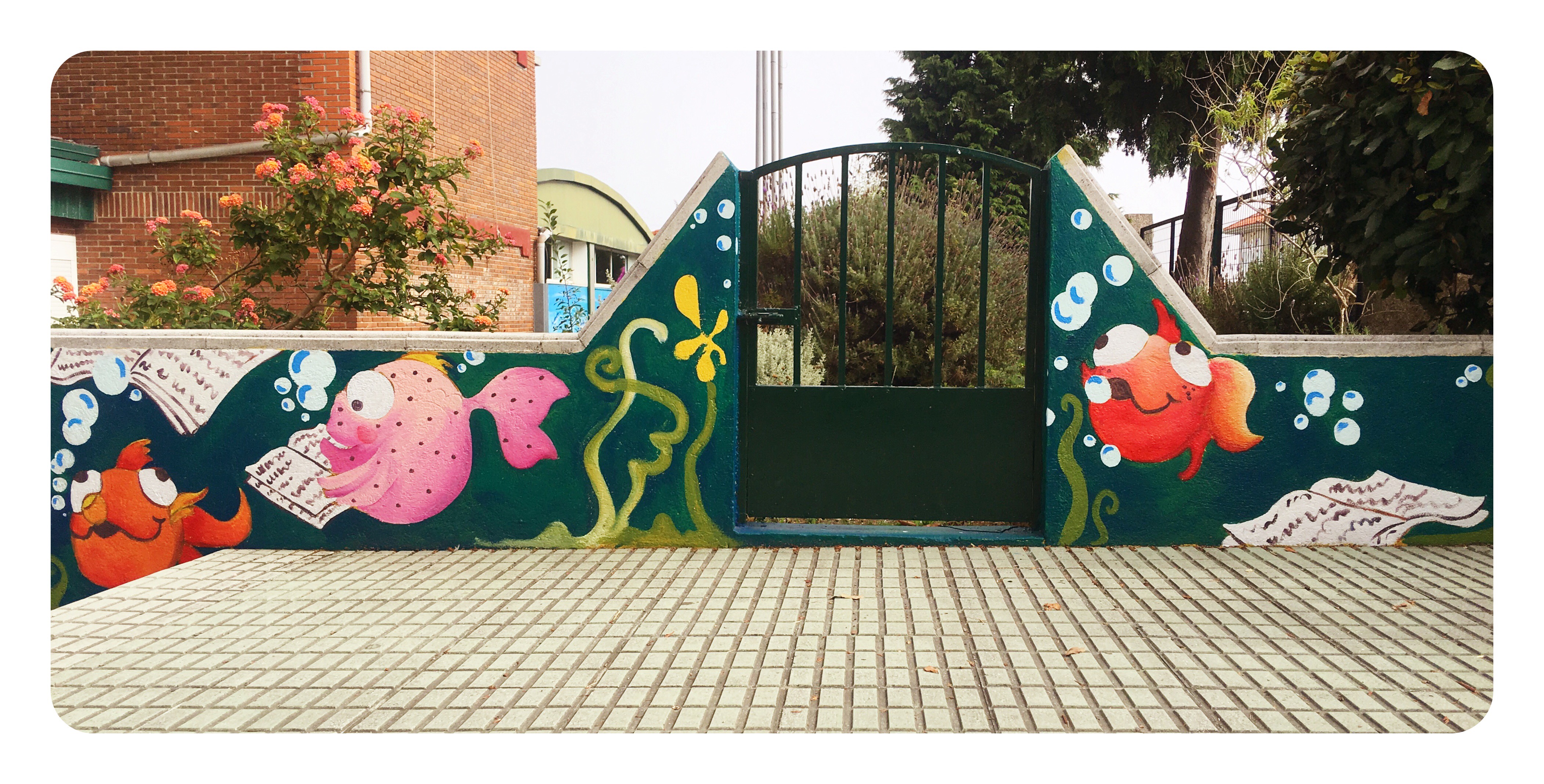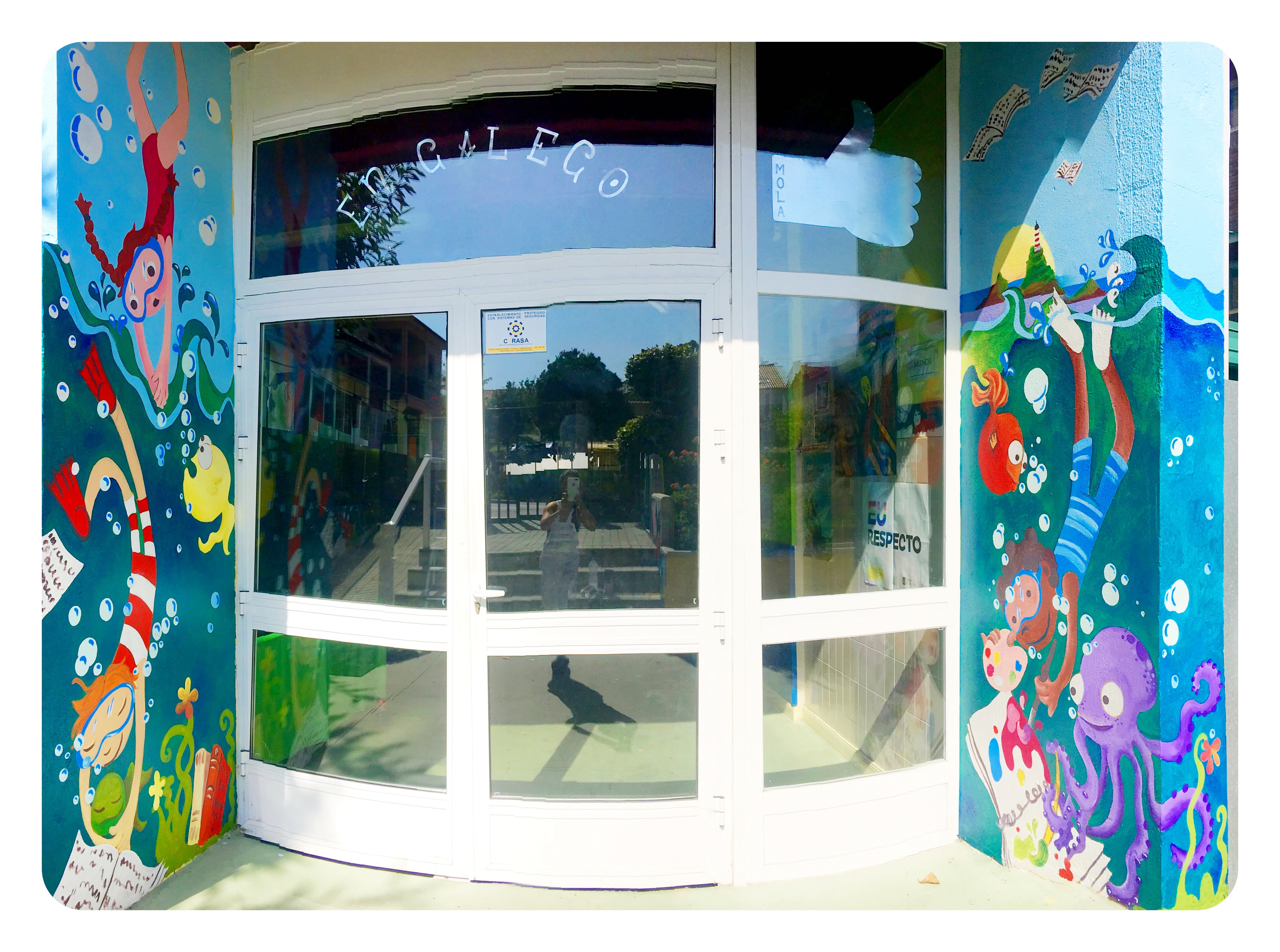 Ilustrando rinconcitos en la entrada principal del colegio público Ceip. Plurilingüe Ría de Vigo. Canido, Vigo (Pontevedra)