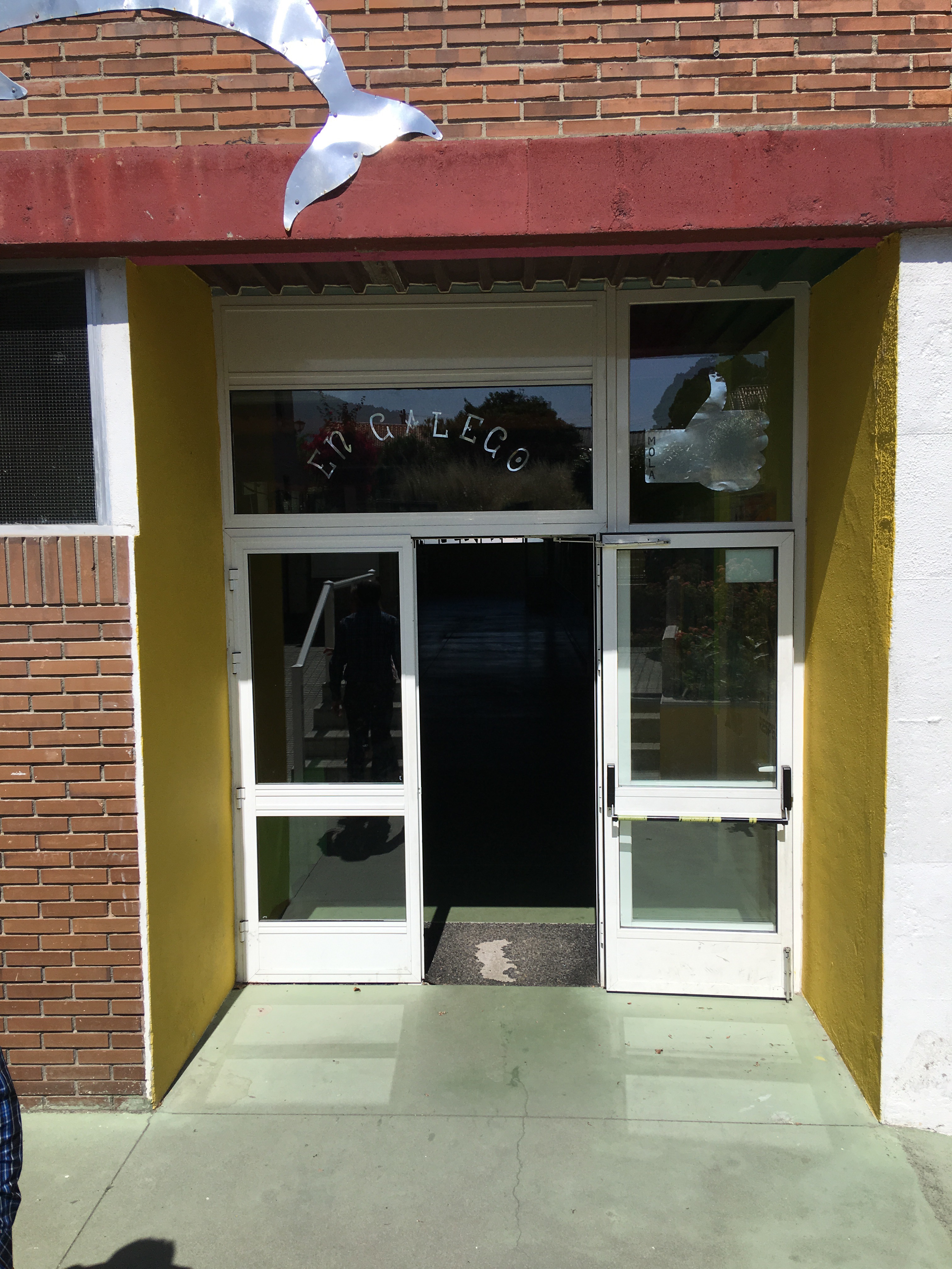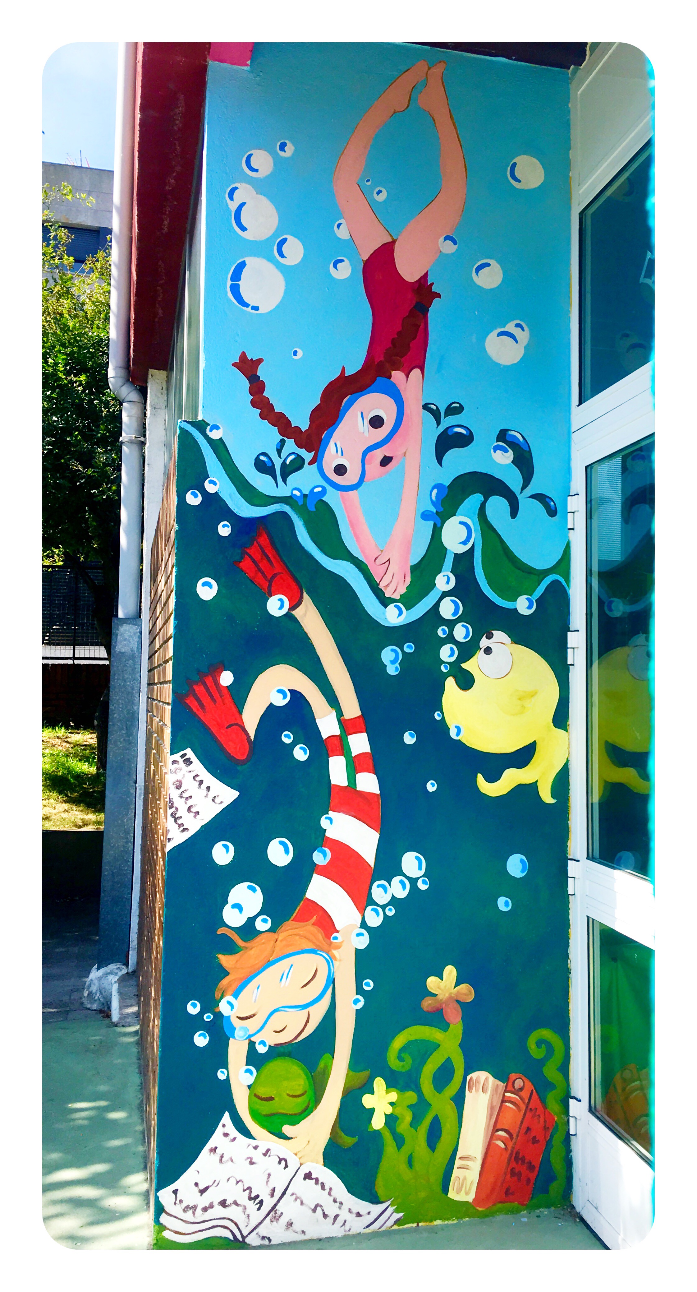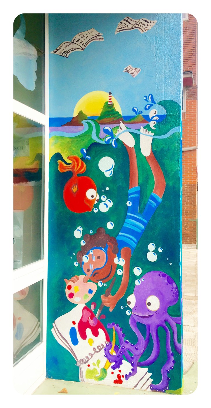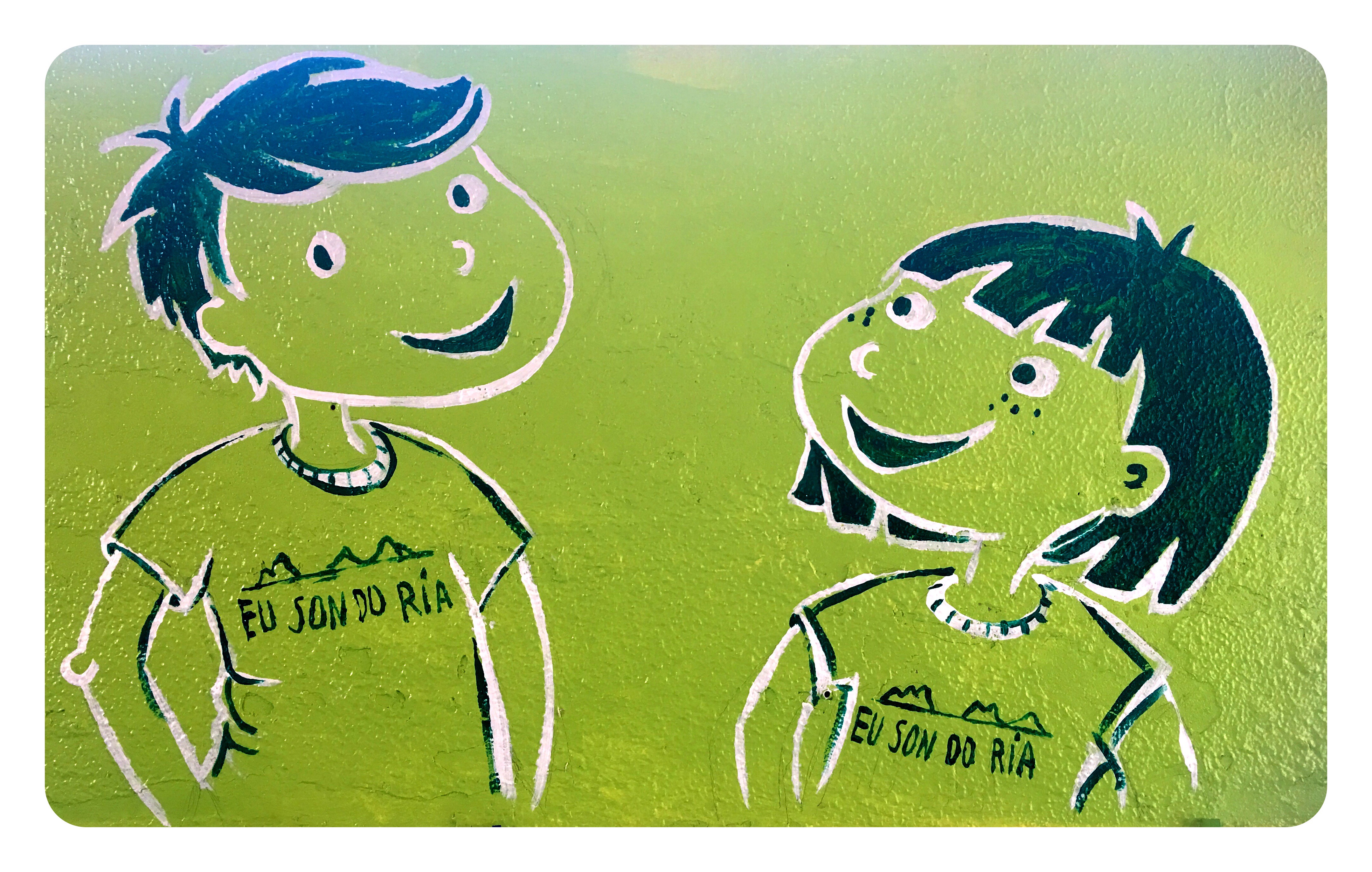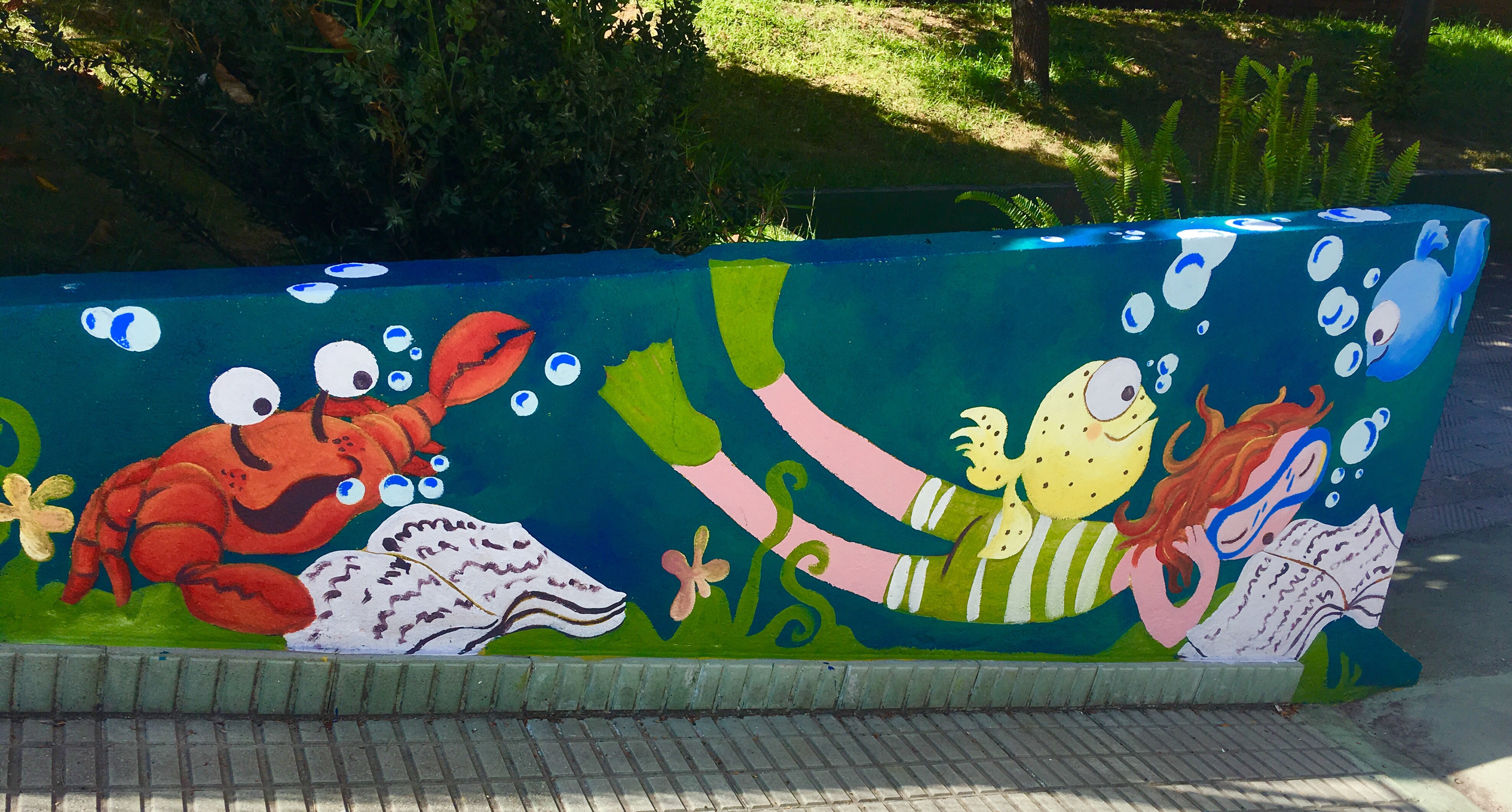 Ilustrando rinconcitos en la entrada principal del colegio público Ceip. Plurilingüe Ría de Vigo. Canido, Vigo (Pontevedra)