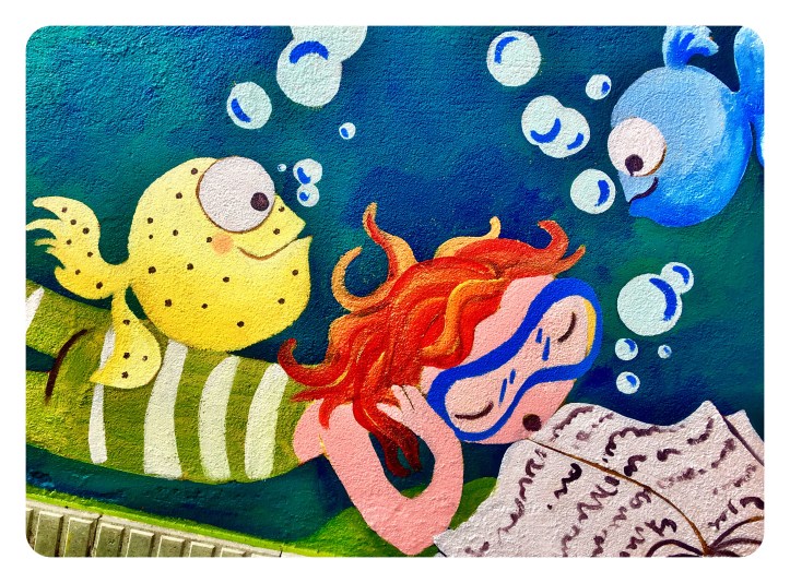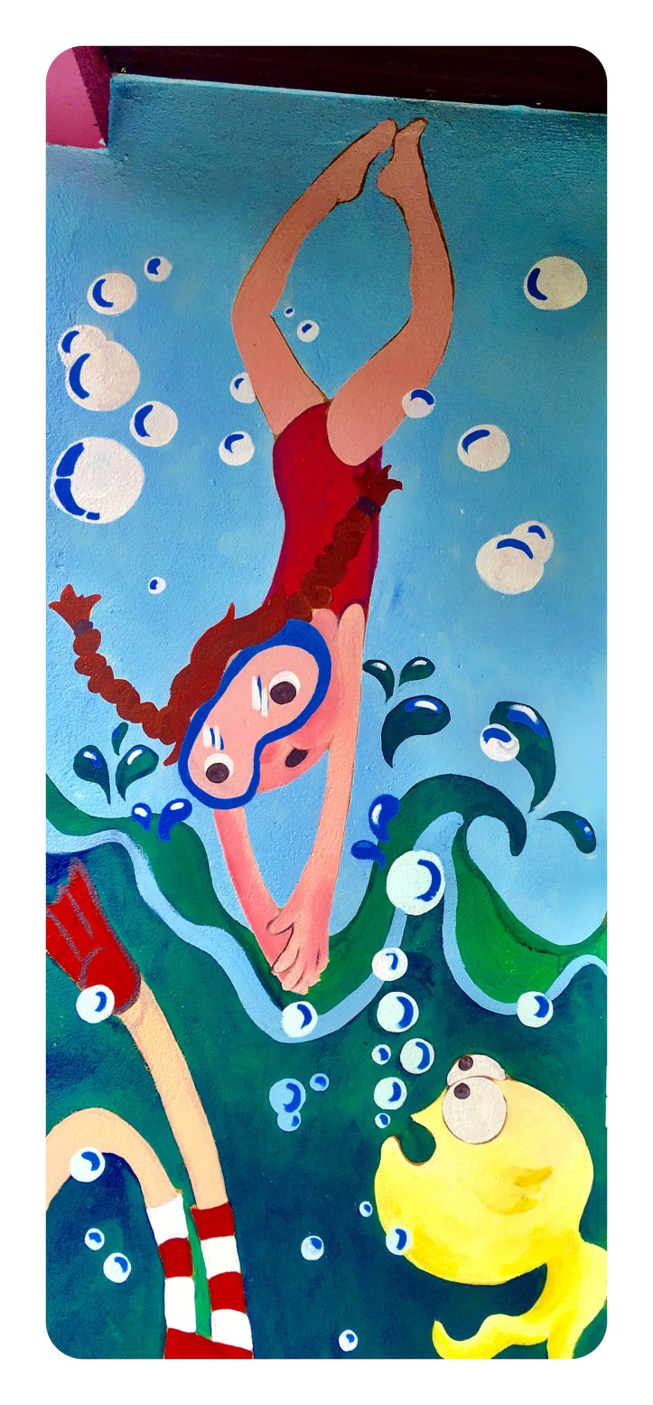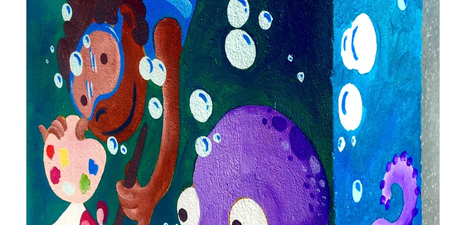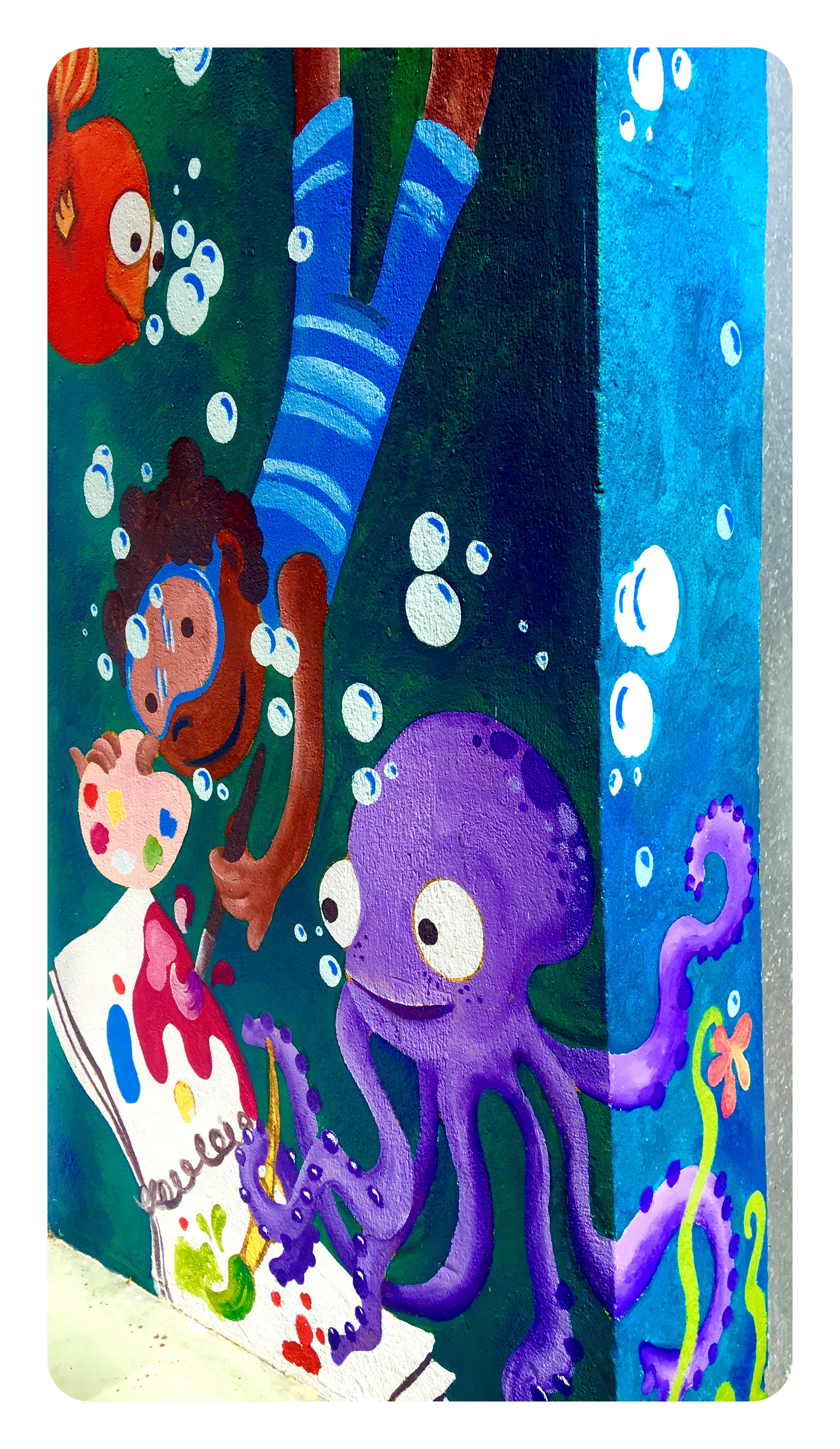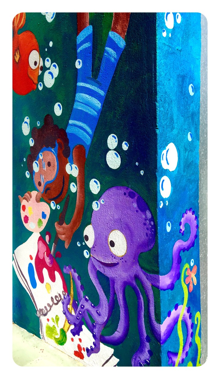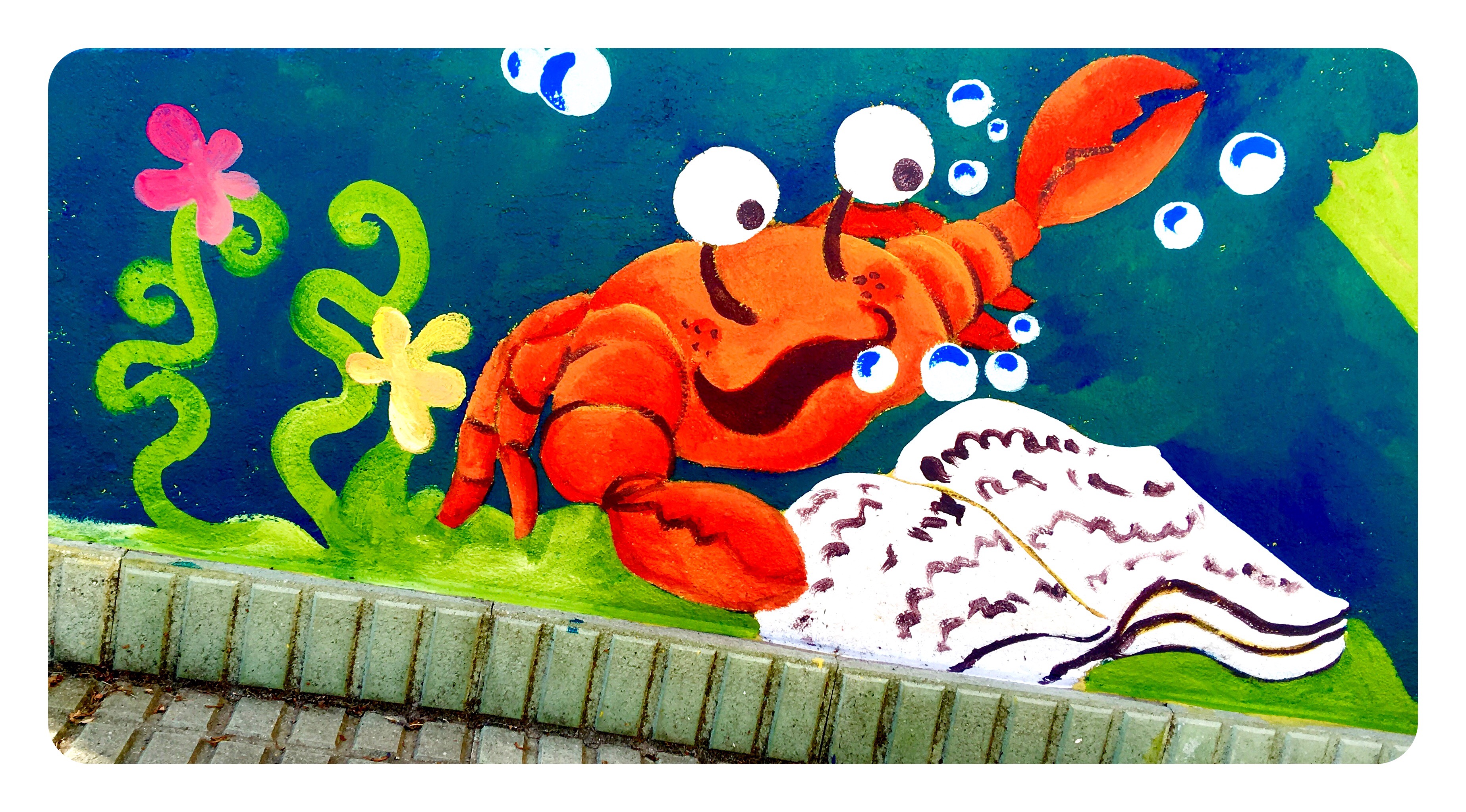 Ilustrando rinconcitos en la entrada principal del colegio público Ceip. Plurilingüe Ría de Vigo. Canido, Vigo (Pontevedra)