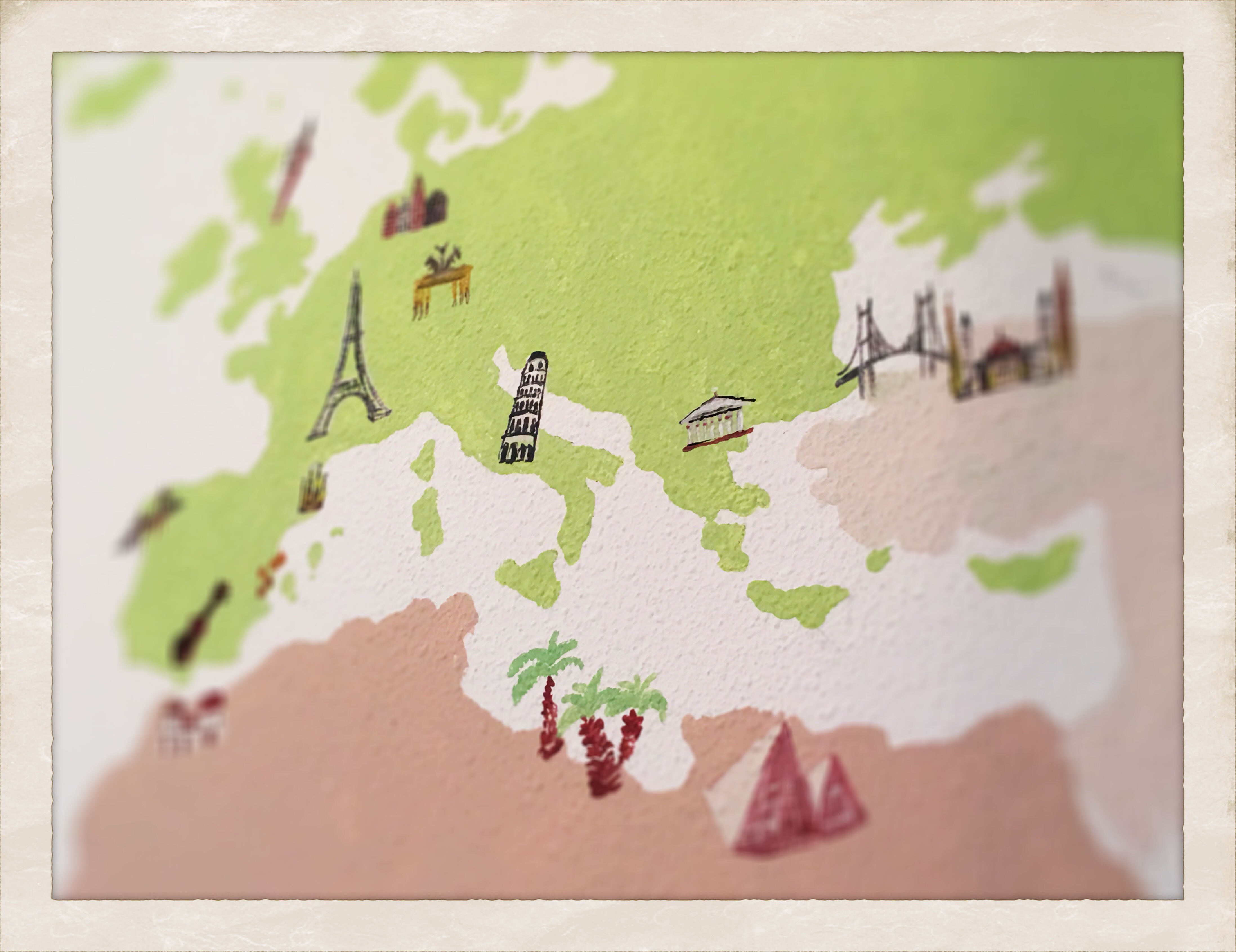 …y hasta aquí los detalles que sobre el mapa del mundo vamos añadiendo a cada país y continente…con el tiempo iremos añadiendo detalles, ya que en realidad podríamos eternamente dibujar en cada país, por su cultura, alimentos, animales, industria, modo de vida, costumbres…