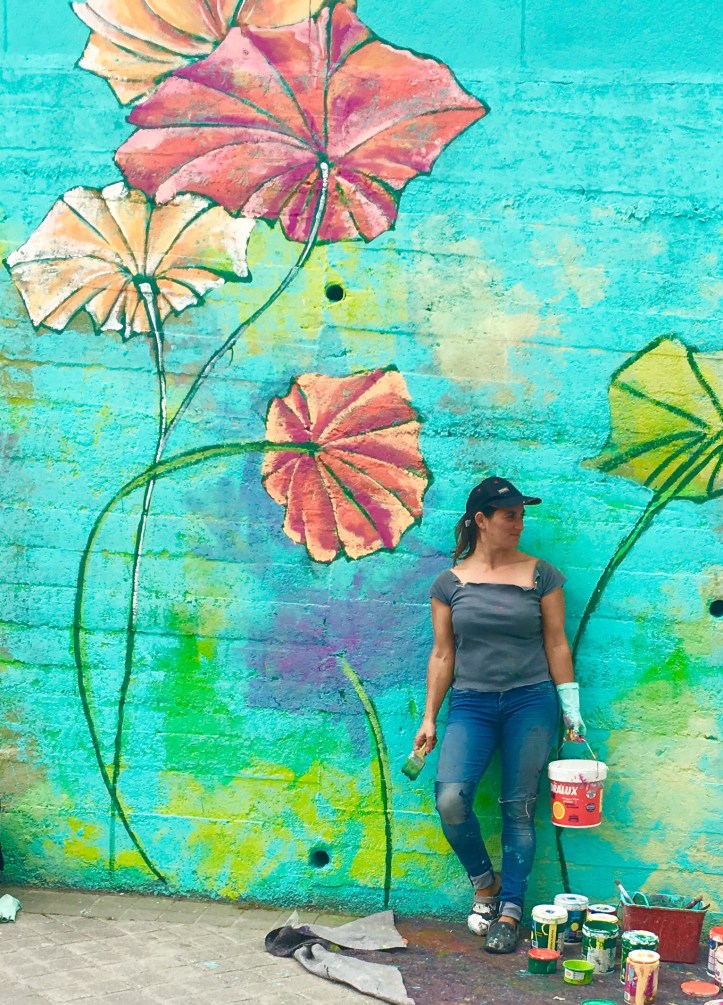 Ha sido muy enriquecedor, escuchar a los vecinos preguntar por el mural, hablar con ellos del color, de la composición, del tema…han bajado vecinos del barrio dispuestos a participar brocha en mano, han pasado transeúntes que han pedido pintar «un poquito» para dejar su huella, otros que nos han felicitado durante el proceso de trabajo, nos han animado, nos han traído café…nos han invitado a subir a sus viviendas a tomar fotos desde otra perspectiva, nos han dado las gracias por llenar de color, luz y flores sus vistas, llegando a decirnos que les entraba La Luz de otra manera en su casa, que llenaba de luz sus viviendas, toda una experiencia que no tiene precio.