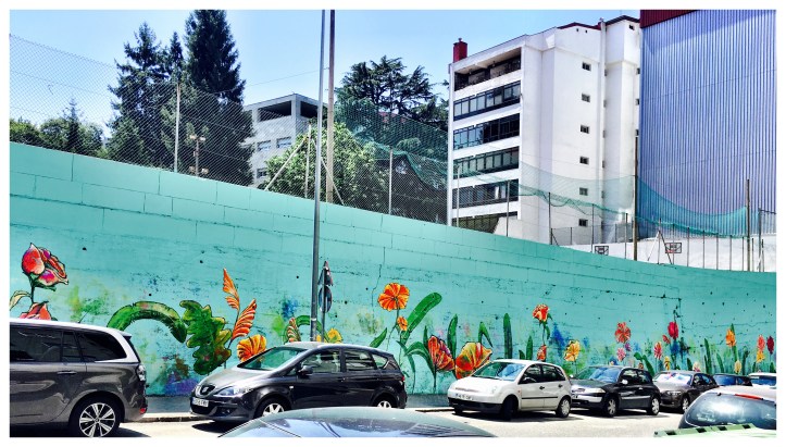 Mural Urbano inscrito dentro del Proyecto Vigo Ciudad de Color 2018-Intervenciones en Centros escolares. Intervención Artística en el Muro de la Calle Ourense y común al Centro Público de Enseñanza Primaria Cep.Dr.Fleming en la ciudad de Vigo.