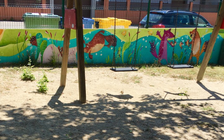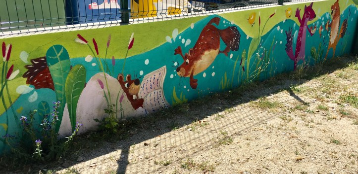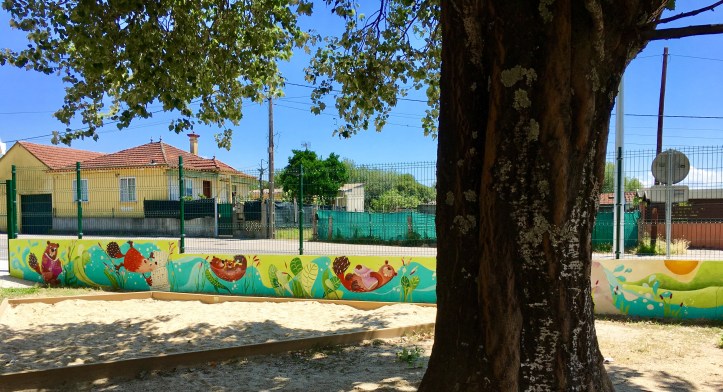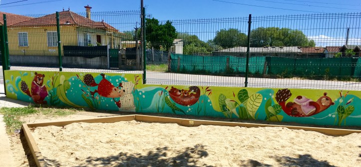 Bueno…pues aquí dejo el resultado de un pequeñito Mural de 13 m2 en un cole de Salvaterra.